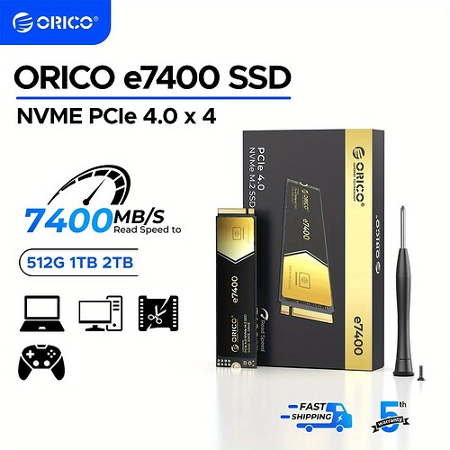 - ORICO e7400 PCIe SSD:1TB $60 / 2TB $130