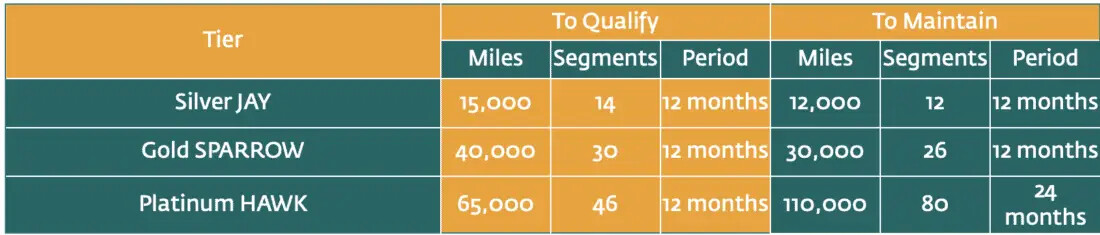金卡 / 寰宇蓝宝石,需35,000点定级里程