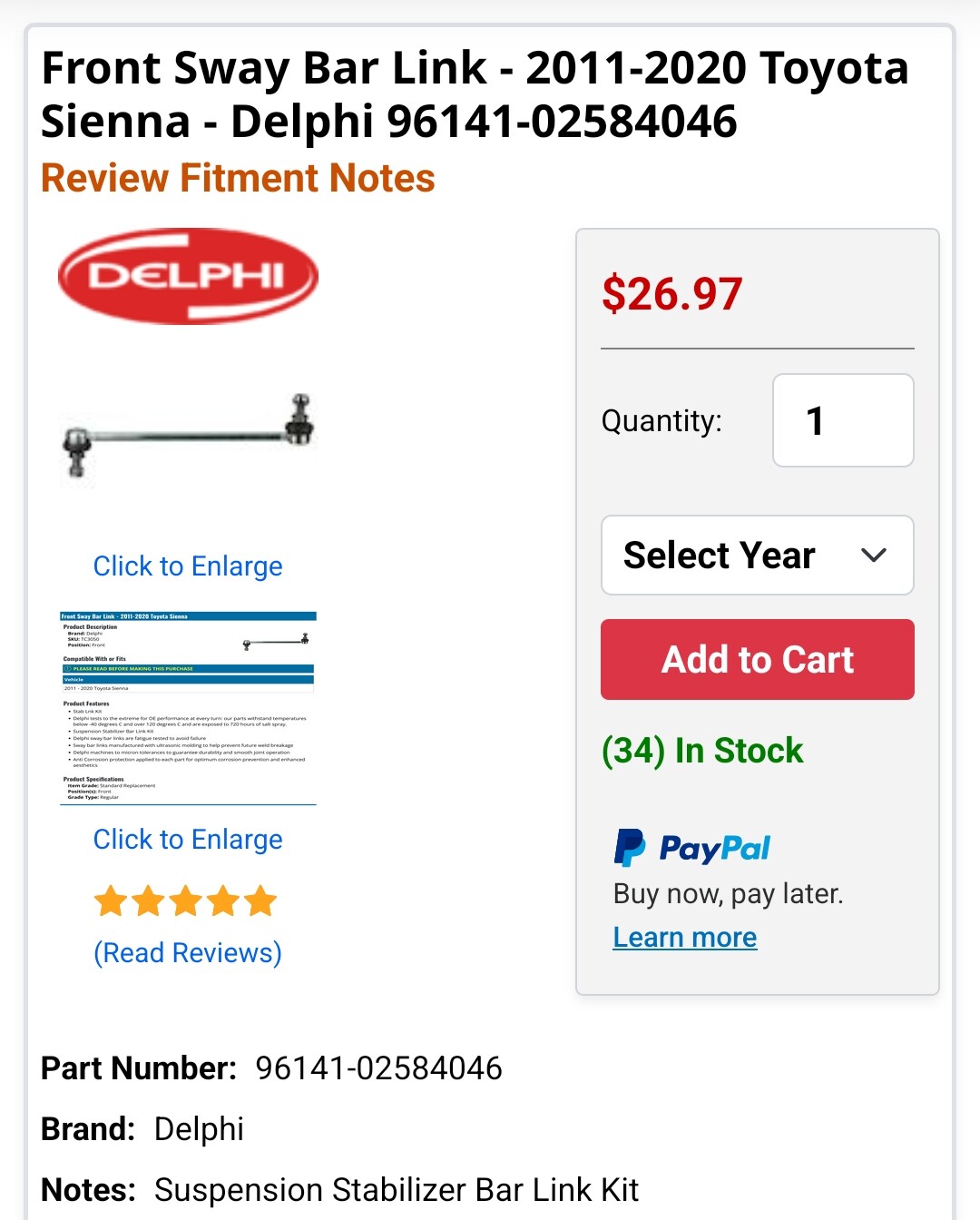 Technician Comments: Sway Bar Links - Front