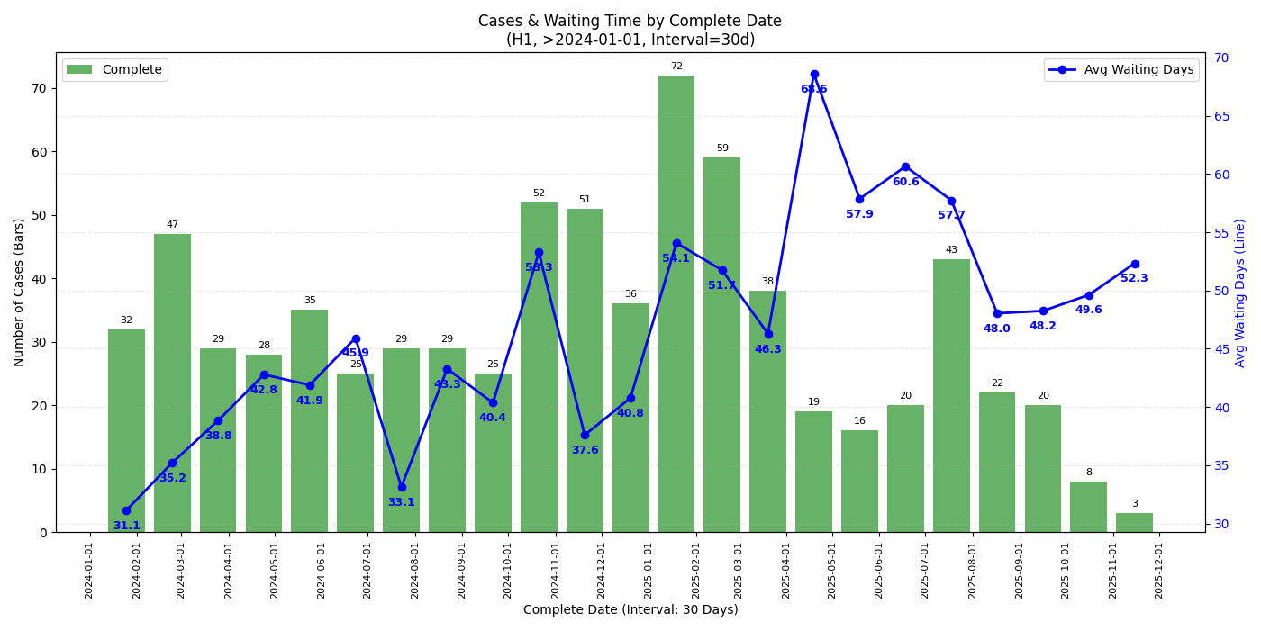 ax2.plot(agg_df.index, line_data, color='blue', marker='o', linewidth=2, label='Avg Waiting Days')