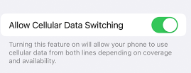 我主力手机不是iPhone,看这个设置需要With Allow Cellular Data Switching turned on,但这同时会allow your phone to use celluar data from both lines.