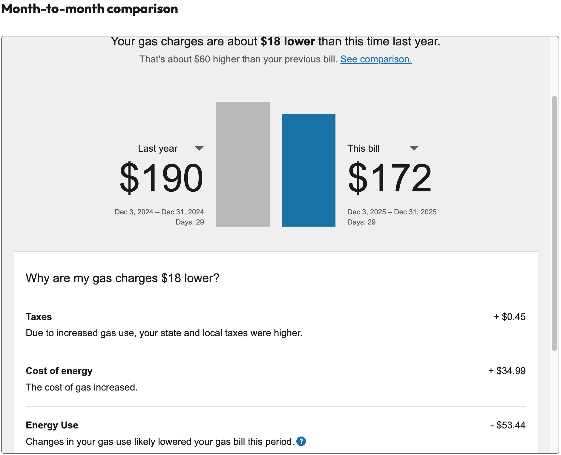 更新下12月的账单,只比去年低一点,不清楚是不是气温影响,暖气基本24小时开68-72度