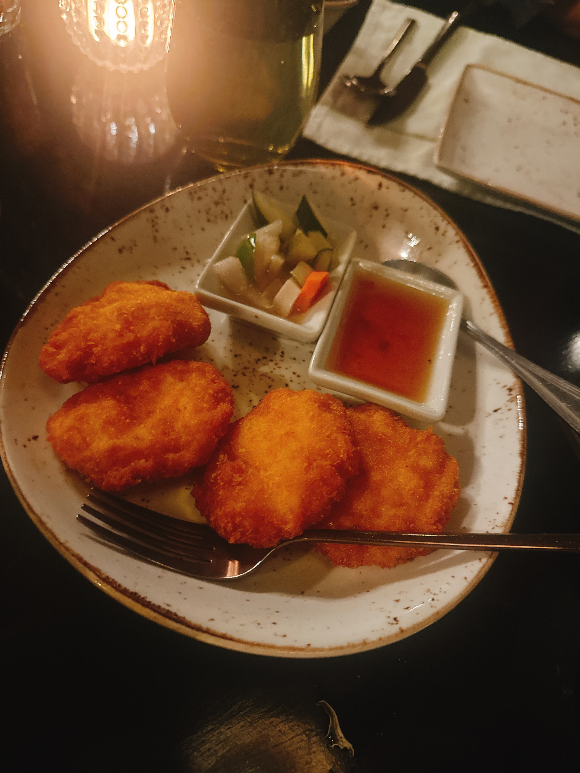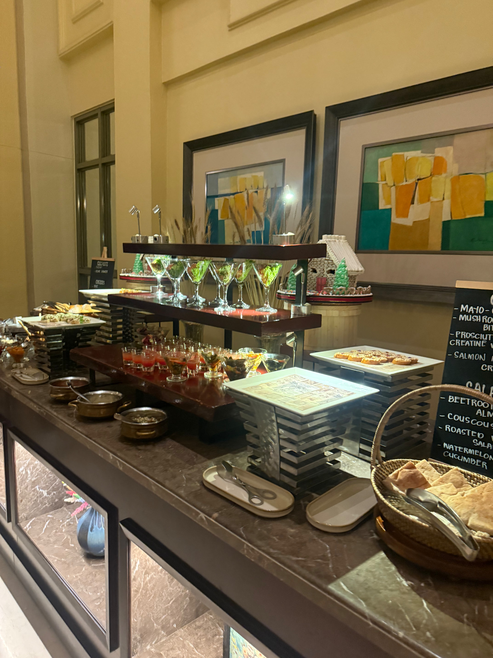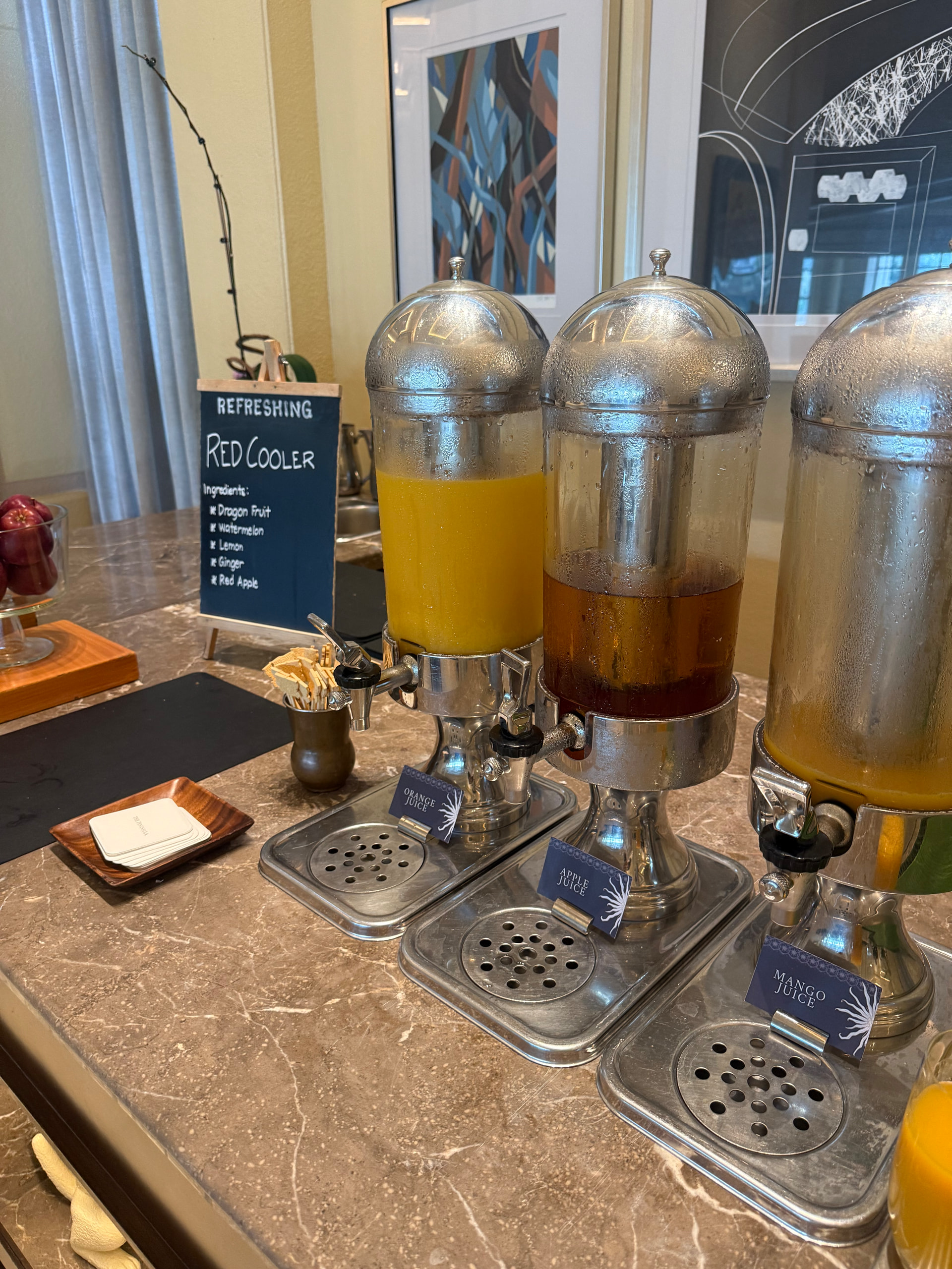 FHR给的$100 credit可以用在酒店各个餐厅的酒水,酒店一共三个餐厅,自助餐大概$60+一位非常丰盛,海鲜什么都有,大堂的餐厅说是international口味,看了下基本就是白人饭,另外还有一个东南亚餐厅Spices。我们最终在Spieces消耗的credit,$100连酒带甜品都够了,吃得非常饱,而且东南亚菜整体口味很不错,这$100给的很值。