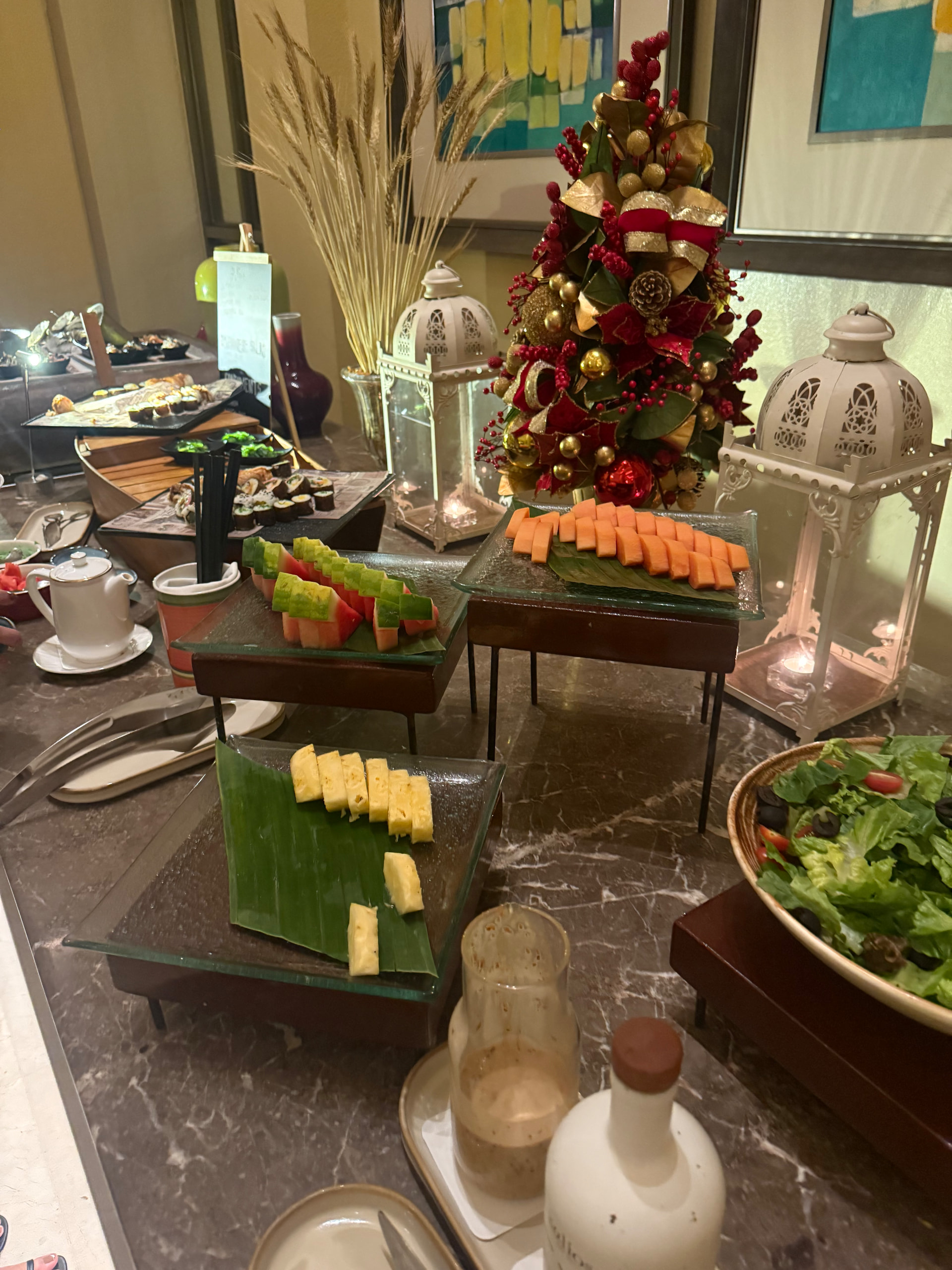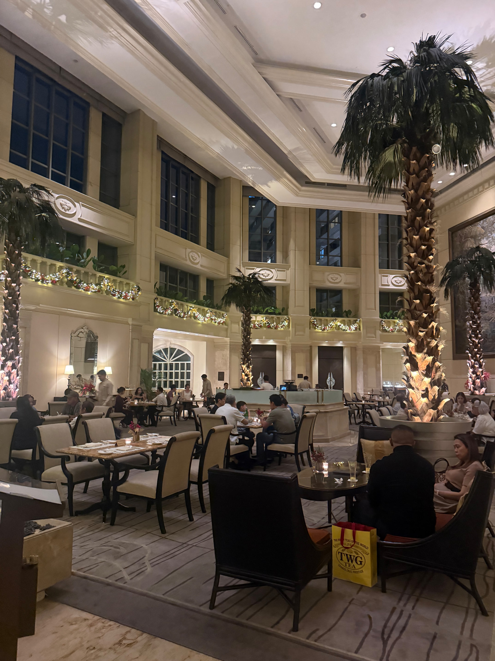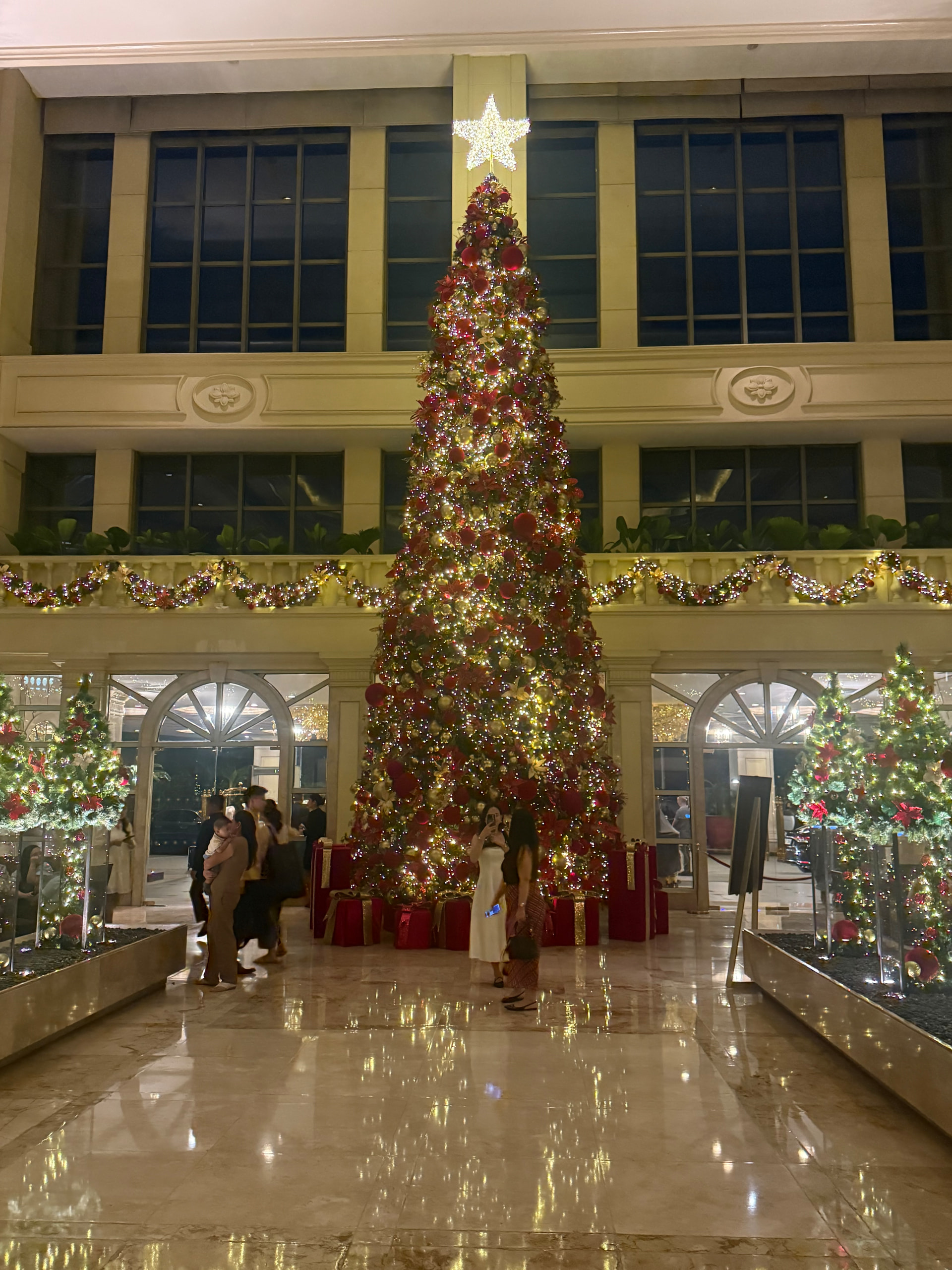酒店在Makati,基本上是马尼拉最好的区了,周围很繁华。11月底12月初的菲律宾已经非常有圣诞氛围了,半岛酒店里面到处都是圣诞装饰,入口就有大圣诞树非常出片,不过整个酒店基本没有大堂,大堂就是餐厅,可以吃饭吃半岛的下午茶。整个酒店非常有半岛的复古风格,还是很美的。