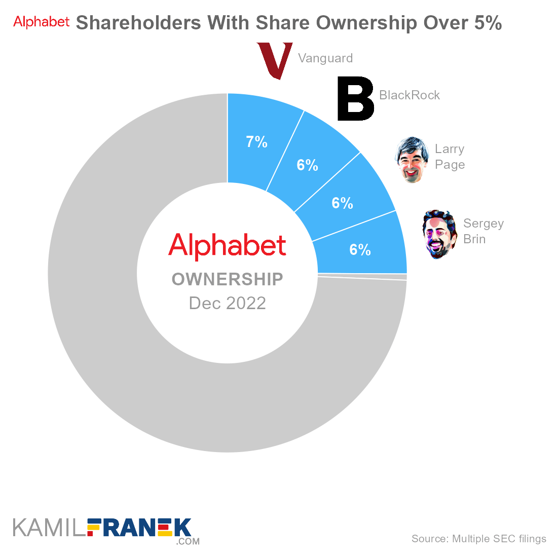 很多公司都是这样,只是拿Google举例感慨一下。Google从一开始他就是一台印钞机,搜索业务天生自带广告的盈利模式。这么一个印钞机公司居然不是创始人牢牢把控着股份,而是选择公开上市让每个普通韭菜都能无门槛购买,这实在是太不可思议了,简直如做慈善一般。VOO里面这类做慈善一般的公司真不少。