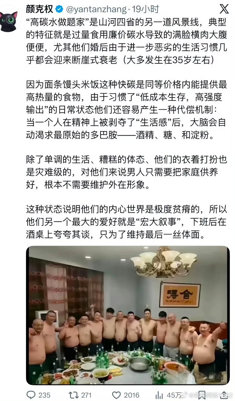 这段说的有些道理。国内普遍碳水太多,饮食不健康。不止山河四省