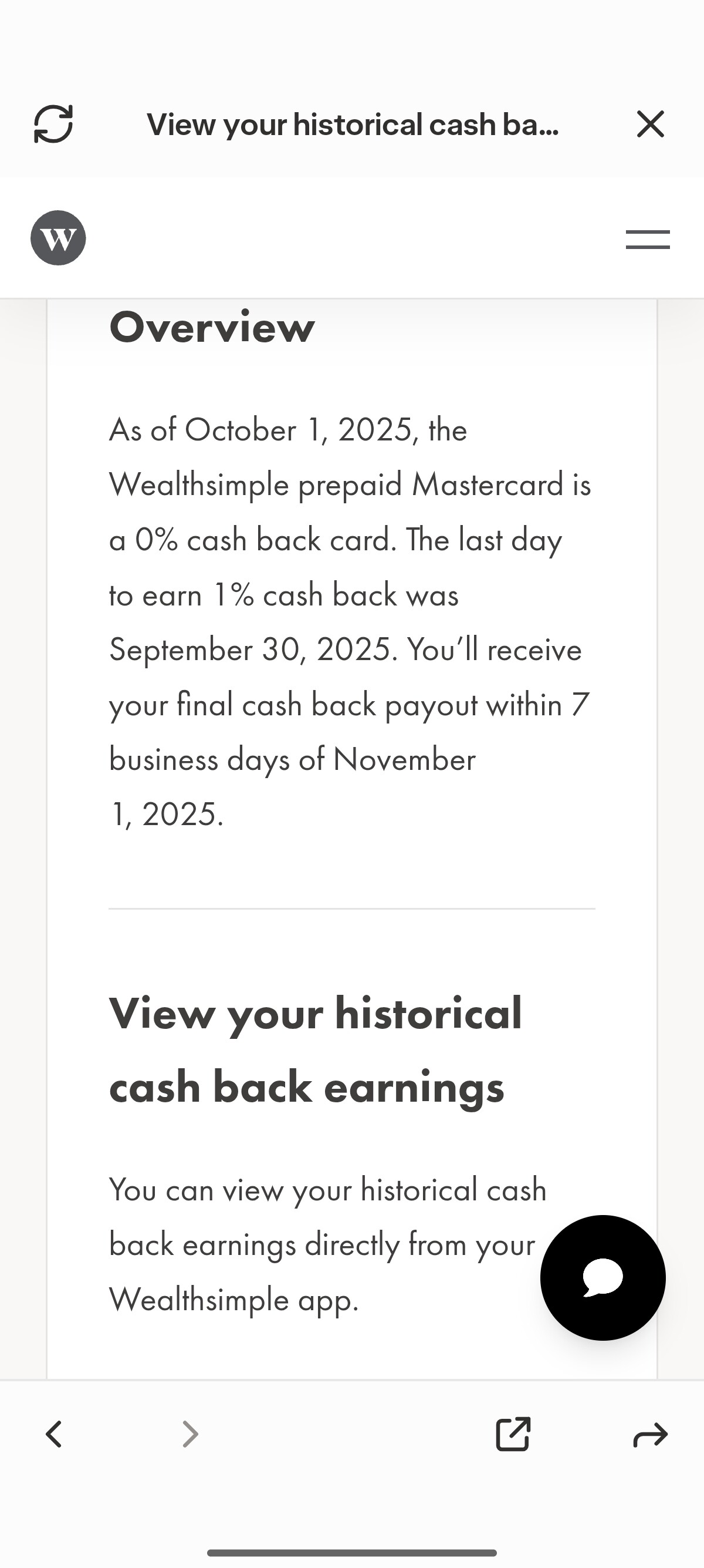 As of October 1, 2025, the Wealthsimple prepaid Mastercard is a 0% cash back card. The last day to earn 1% cash back was September 30, 2025. You’ll receive your final cash back payout within 7 business days of November 1, 2025.