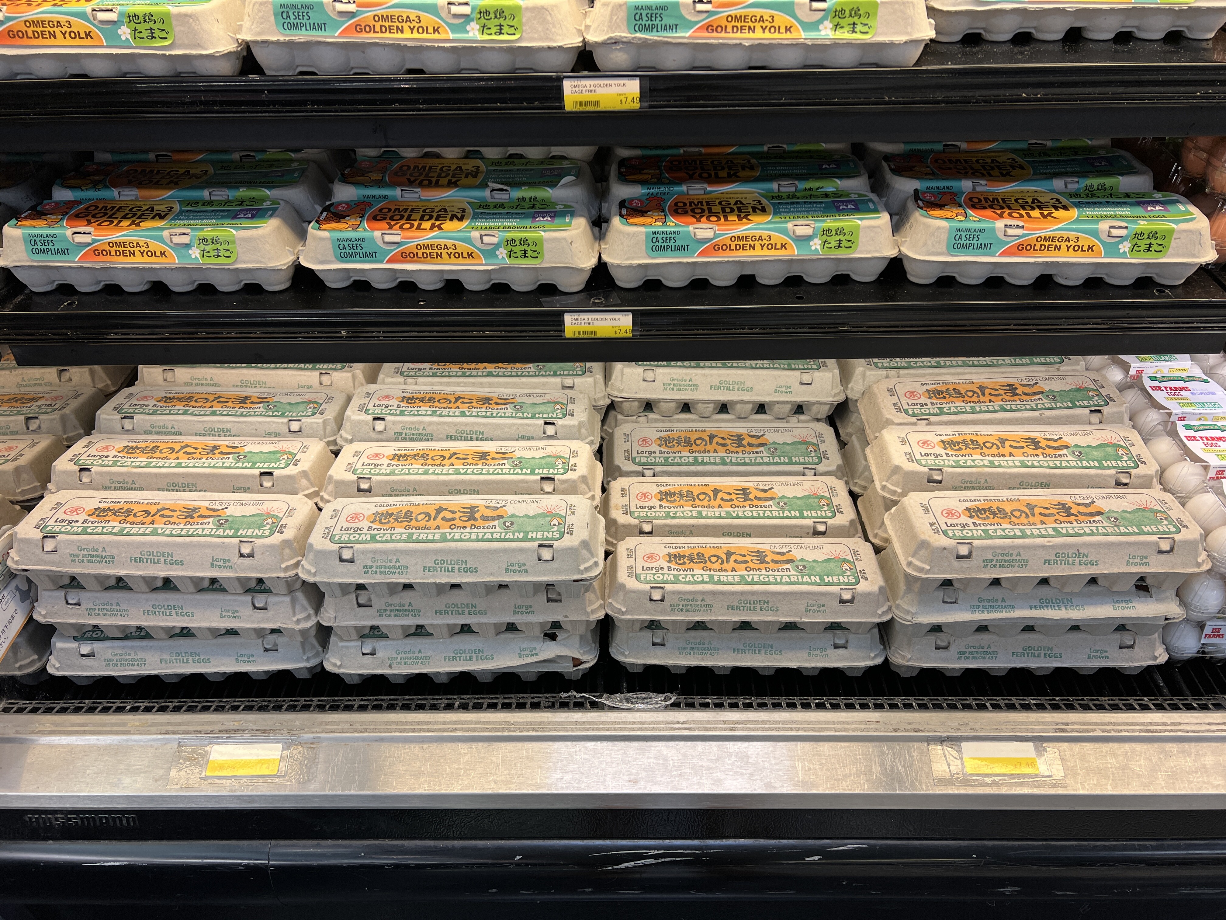 基本每周末去我这边农夫市场买,10块20个,小贵,但是味道挺接近国内土鸡蛋的
