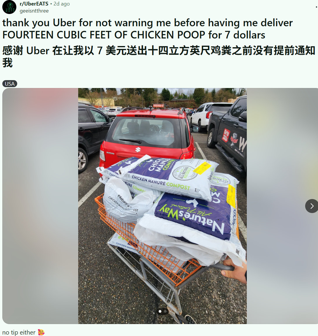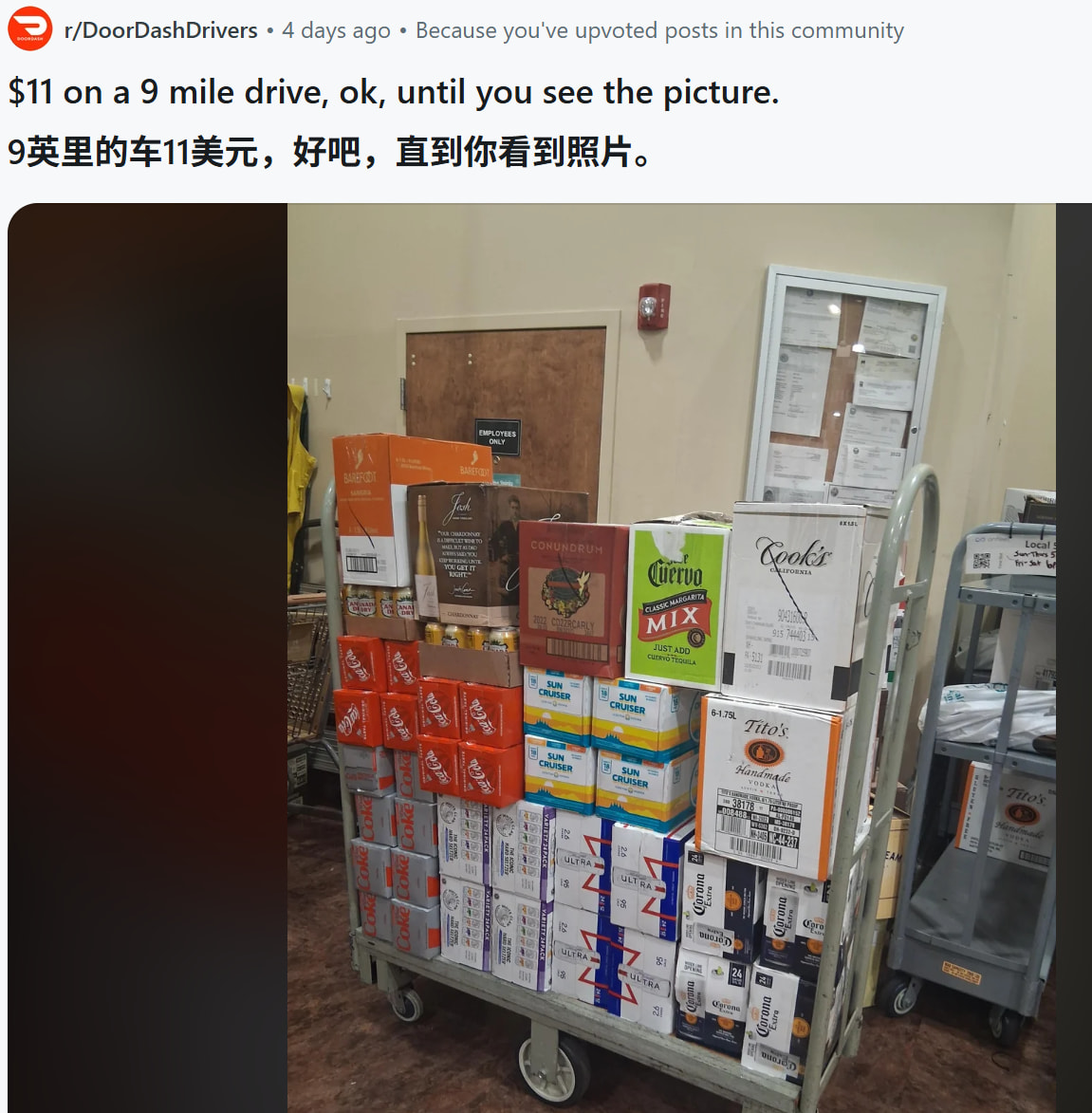 这得问doordash了。。我还真没买过这么多的bulky item ![]()