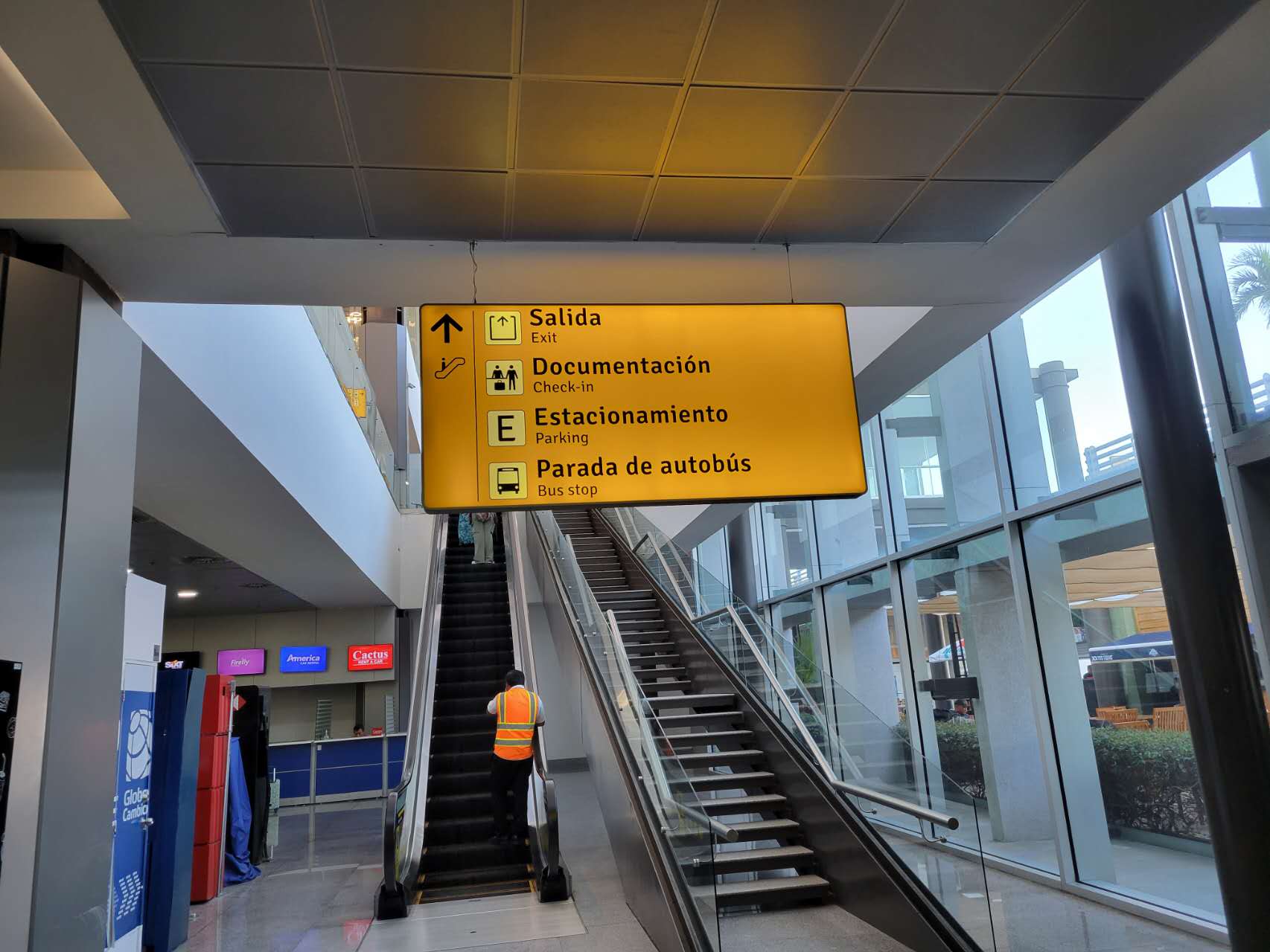 在机场怎么坐 Bus 官网 也很简单,国际到达Terminal 2要走小10分钟,国内到达Terminal 1 很近,认准这个Parada de autobus的标识跟着一直走就行了,也可以提前看下这个Youtube: The $5 SJD Airport Bus to Cabo San Lucas: