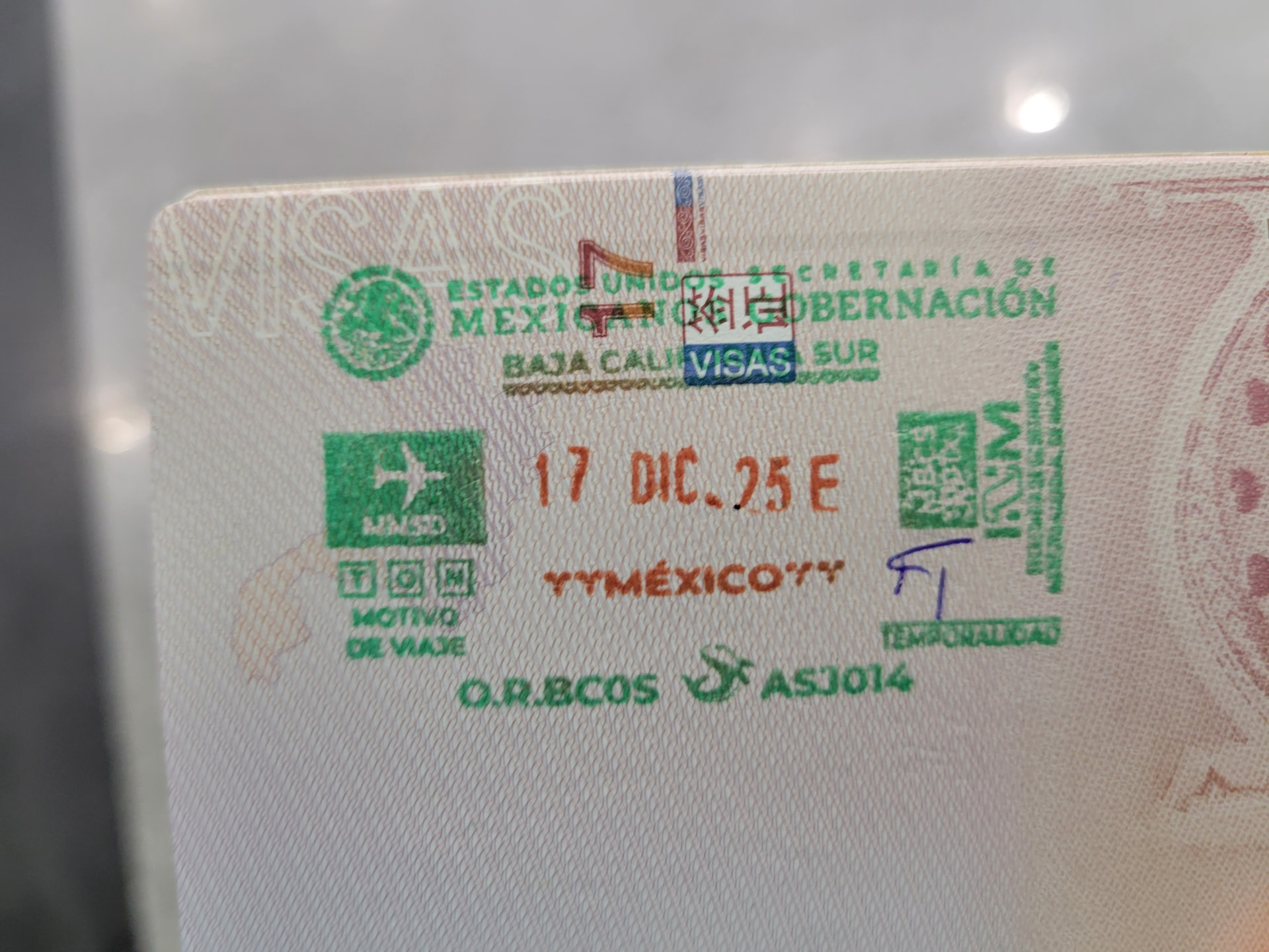 SJD入境 (注意要走Mexican National通道) 给我盖的F1章