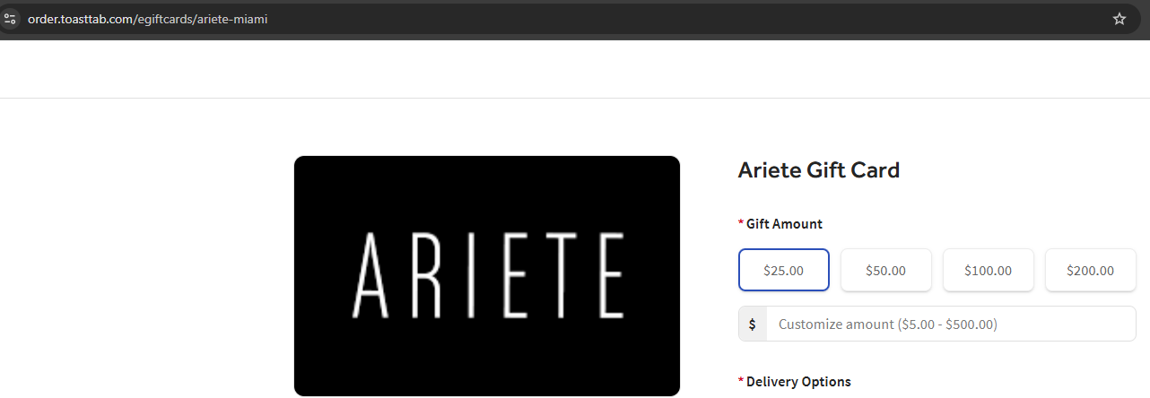 发现楼主的列表没有Miami的Ariete,这家从CSR新福利公布就一直有,12/20更新后还是在列。从他官网的Purchase Gift Card链接进去是Toasttab的。不过我每次都是直接刷卡没买过GC所以不能提供DP。