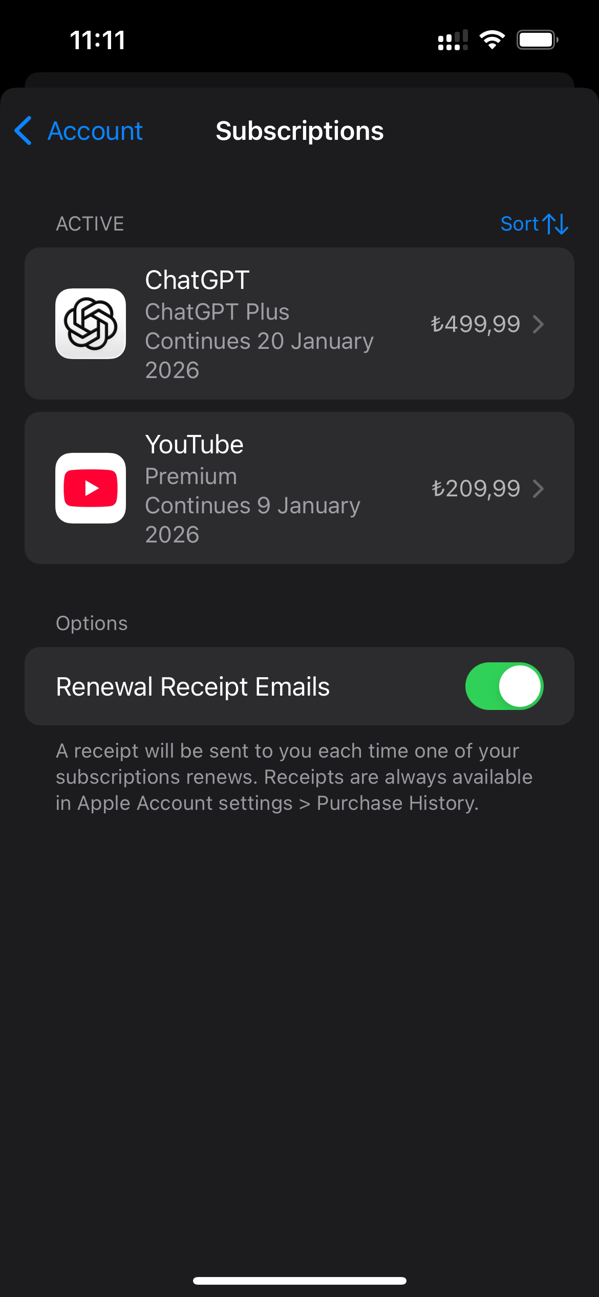 购买2000里拉礼品卡之后,在App Store里充值余额,就可以正常开通你所需要的服务了~