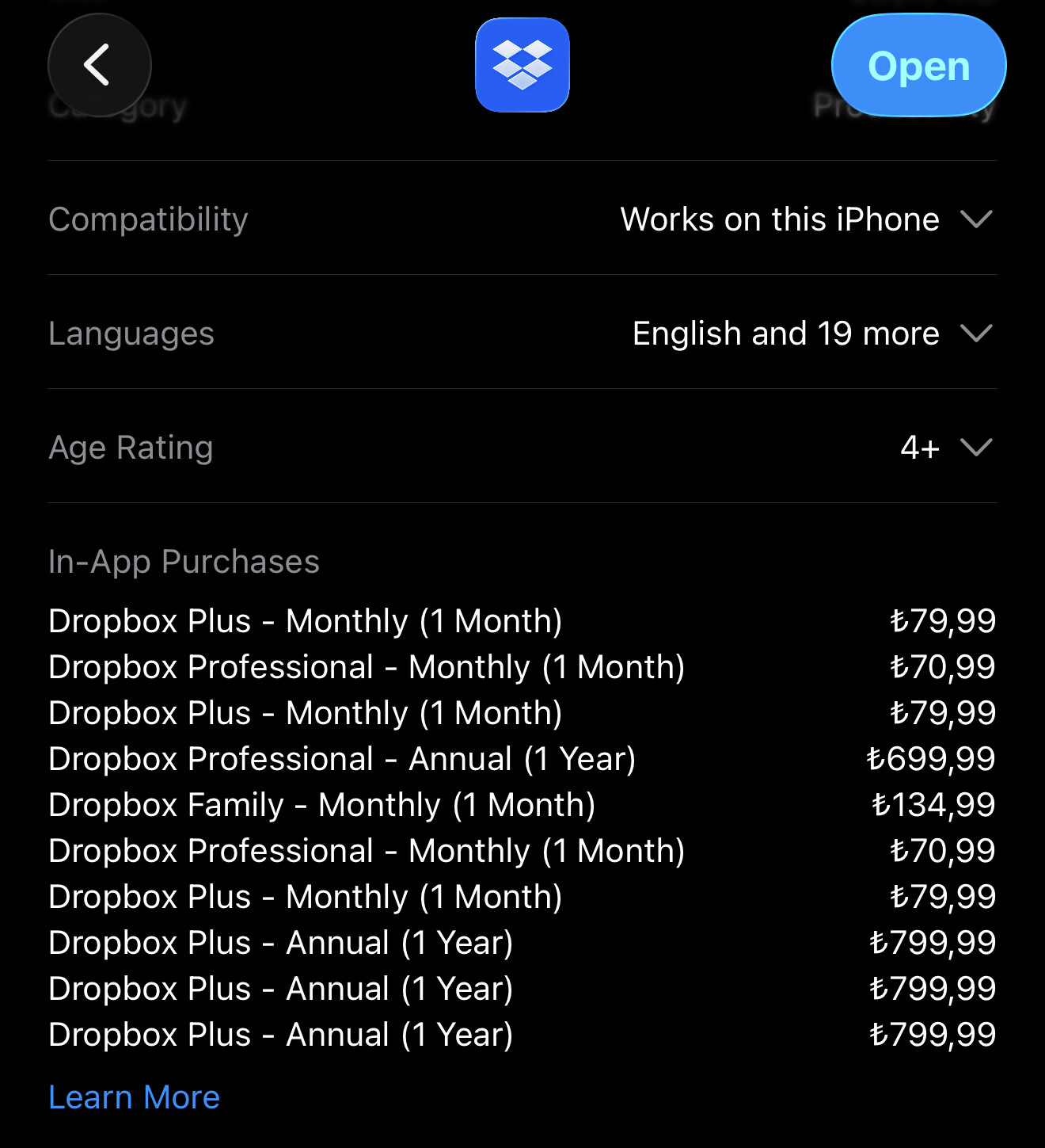 众所周知土耳其区为世界有名的低价区,其中很多的订阅都比其他地区便宜很多,比如常用的Dropbox,土耳其区的价格为: