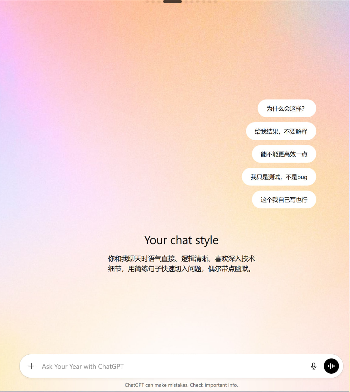 我和这个账号只有 10 月份后到现在(一共 3 个月左右的数据),之前的账号疑似因为每天爬 arxiv 分析文章不小心 parse 到了违反 policy 的内容被封号了。记忆无法恢复,OpenAI 也不给我一个理由为什么封号 ![]()