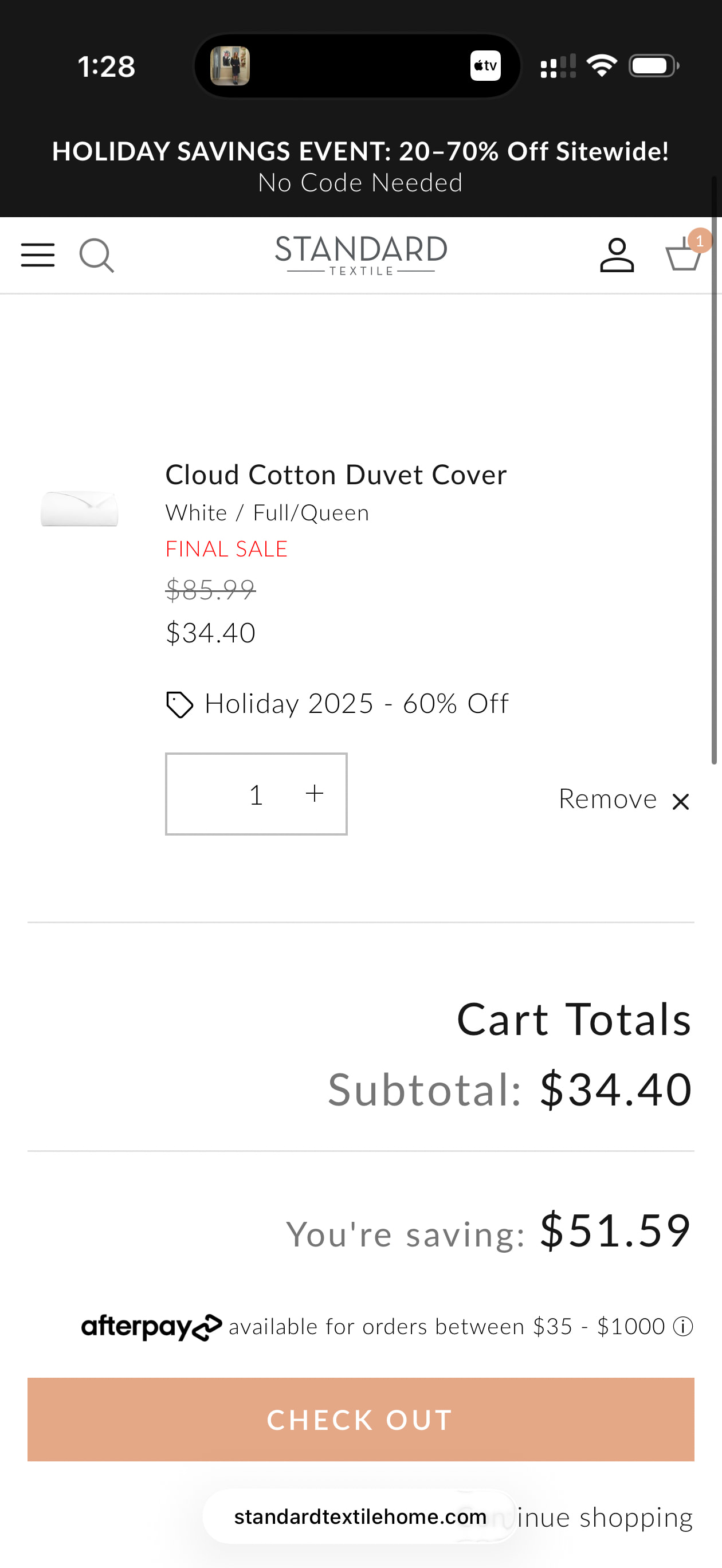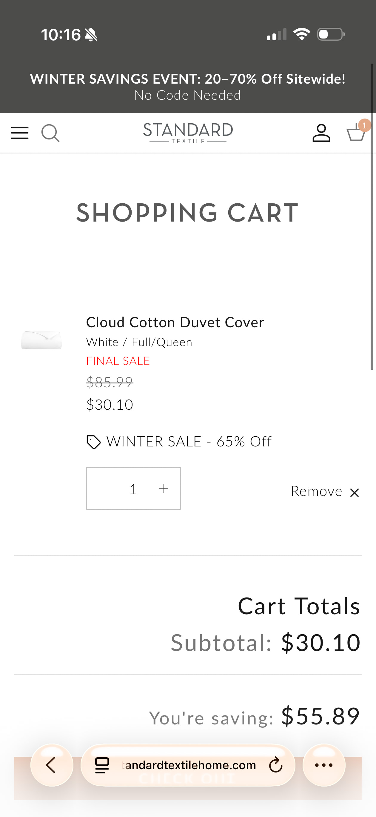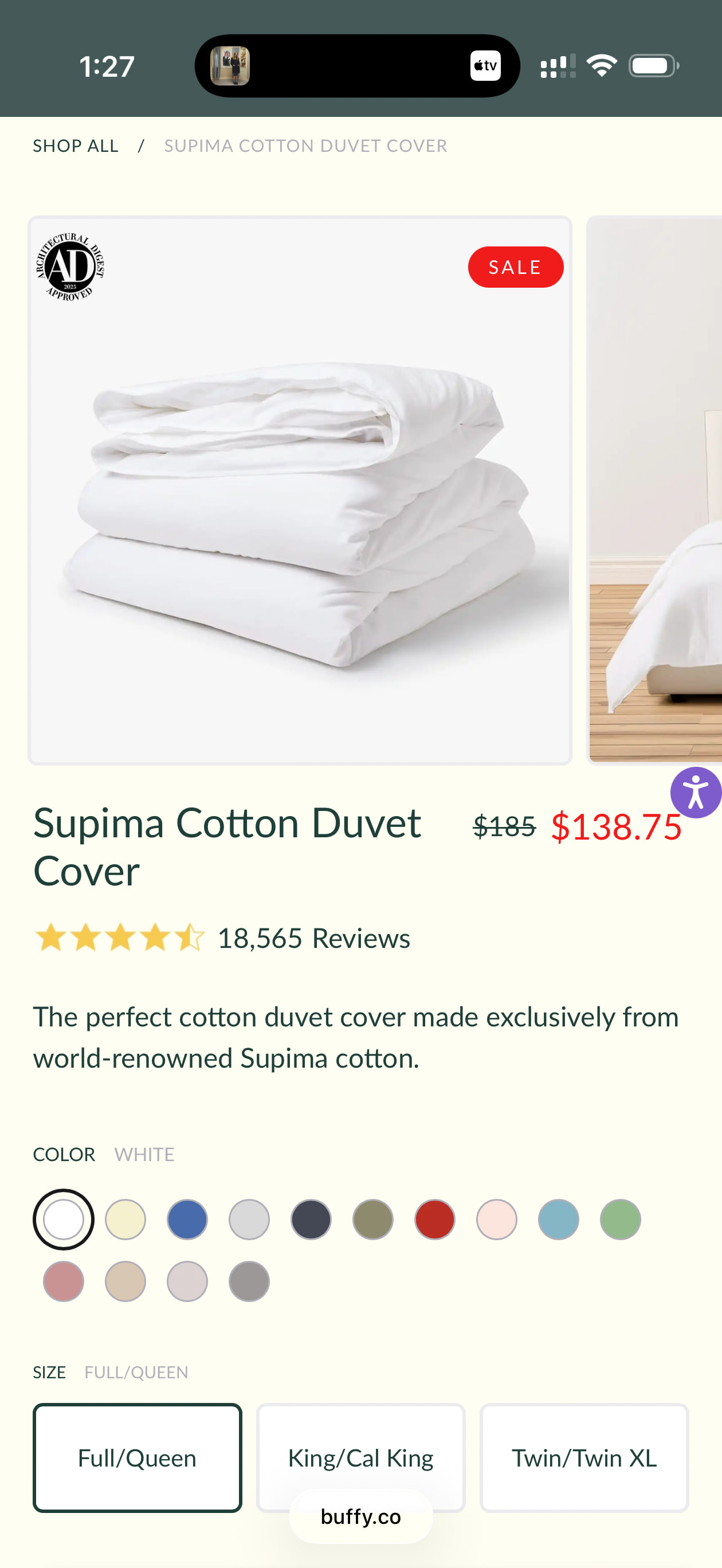 我在standard textile下单了床单,到手发现竟然是Buffy这个牌子的。官网巨贵。 使用体验一流,五星级酒店体验 潭里需要的可以冲了。 注意duvet cover才是那种把被子包在里面,sheet set里是一张平的那种。 折扣在购物车里才会显示