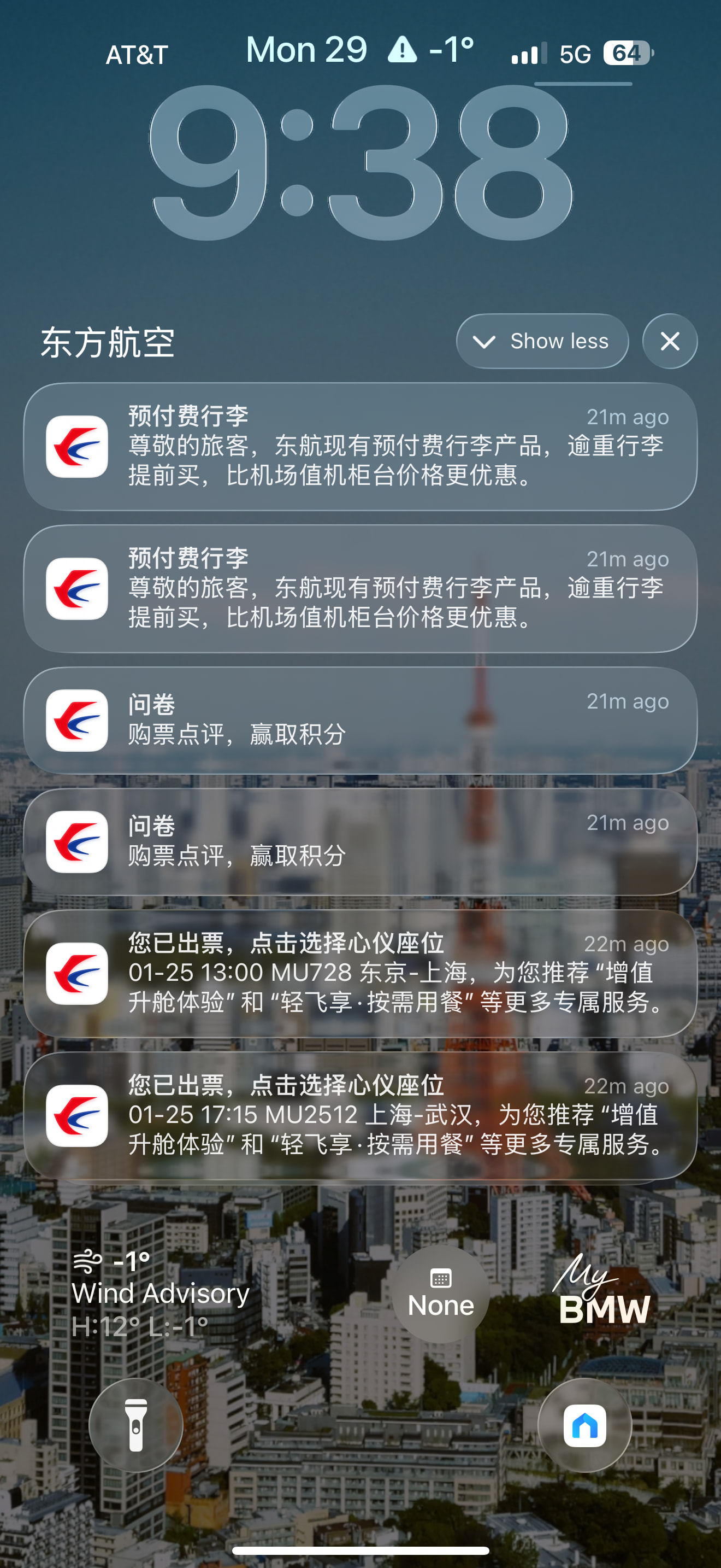 哦对了还有,如果订联程票的话,东航app会每出一个leg都发三个推送