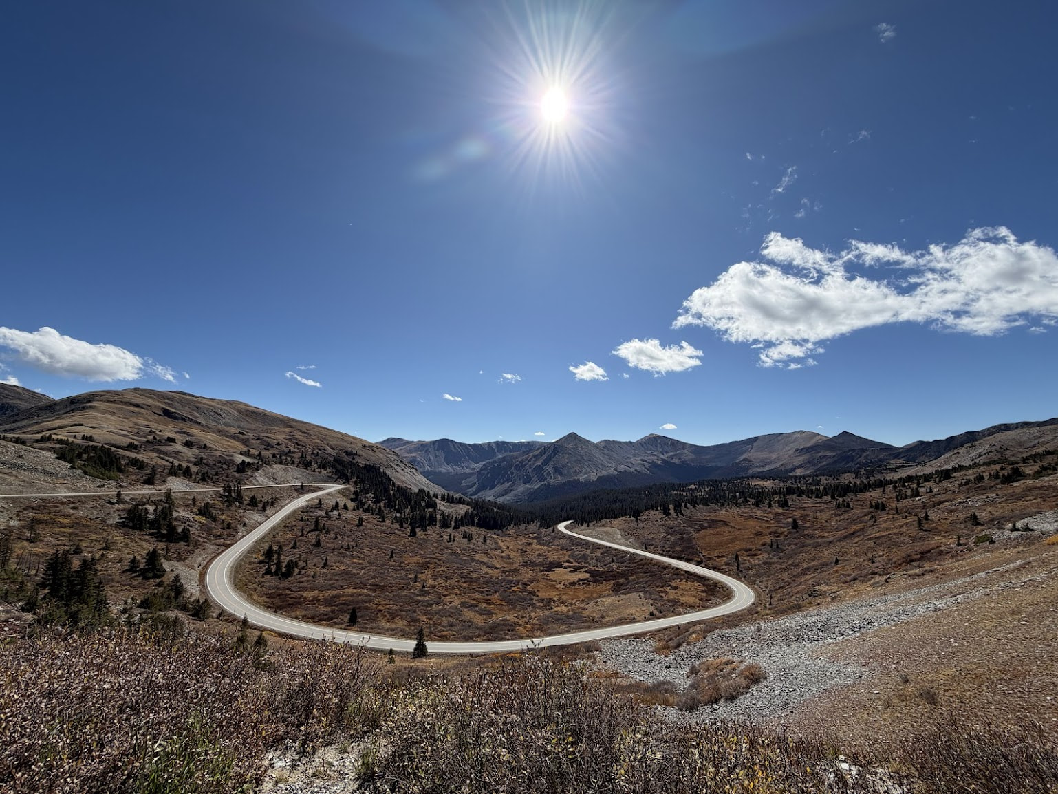 路上乌云越来越多,时不时飘下一阵小雨。到达Kenosha Pass之后,视野便开阔起来。