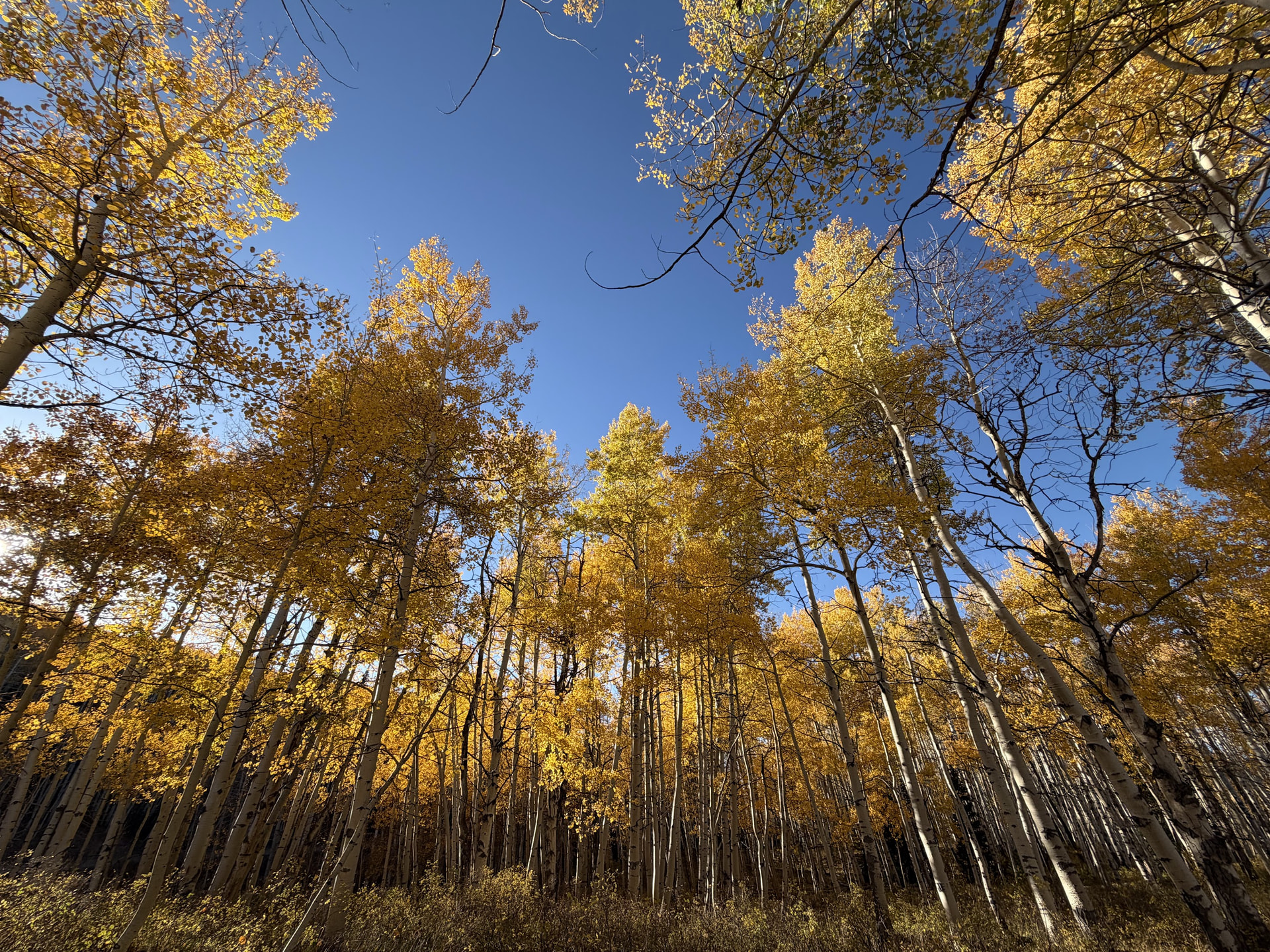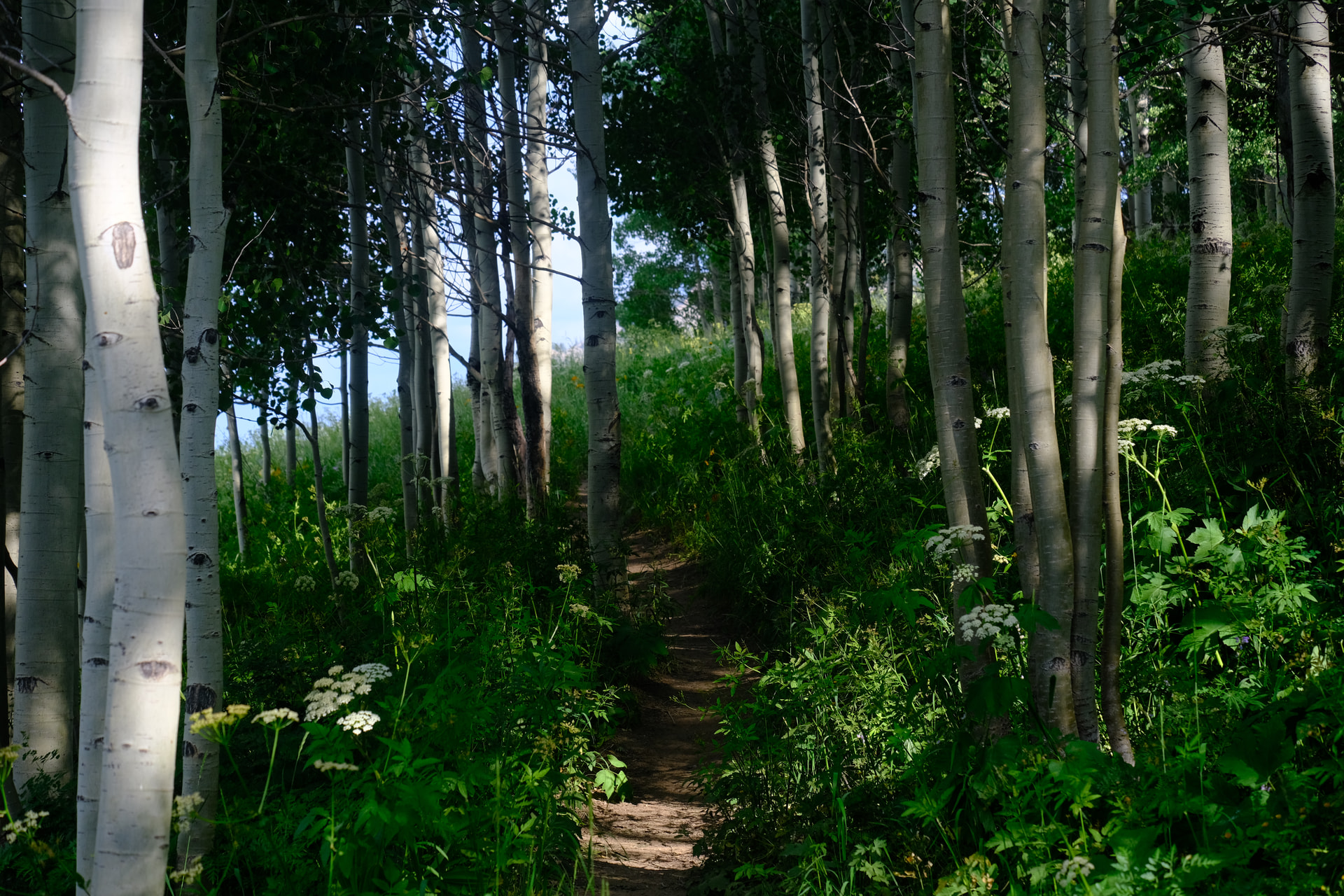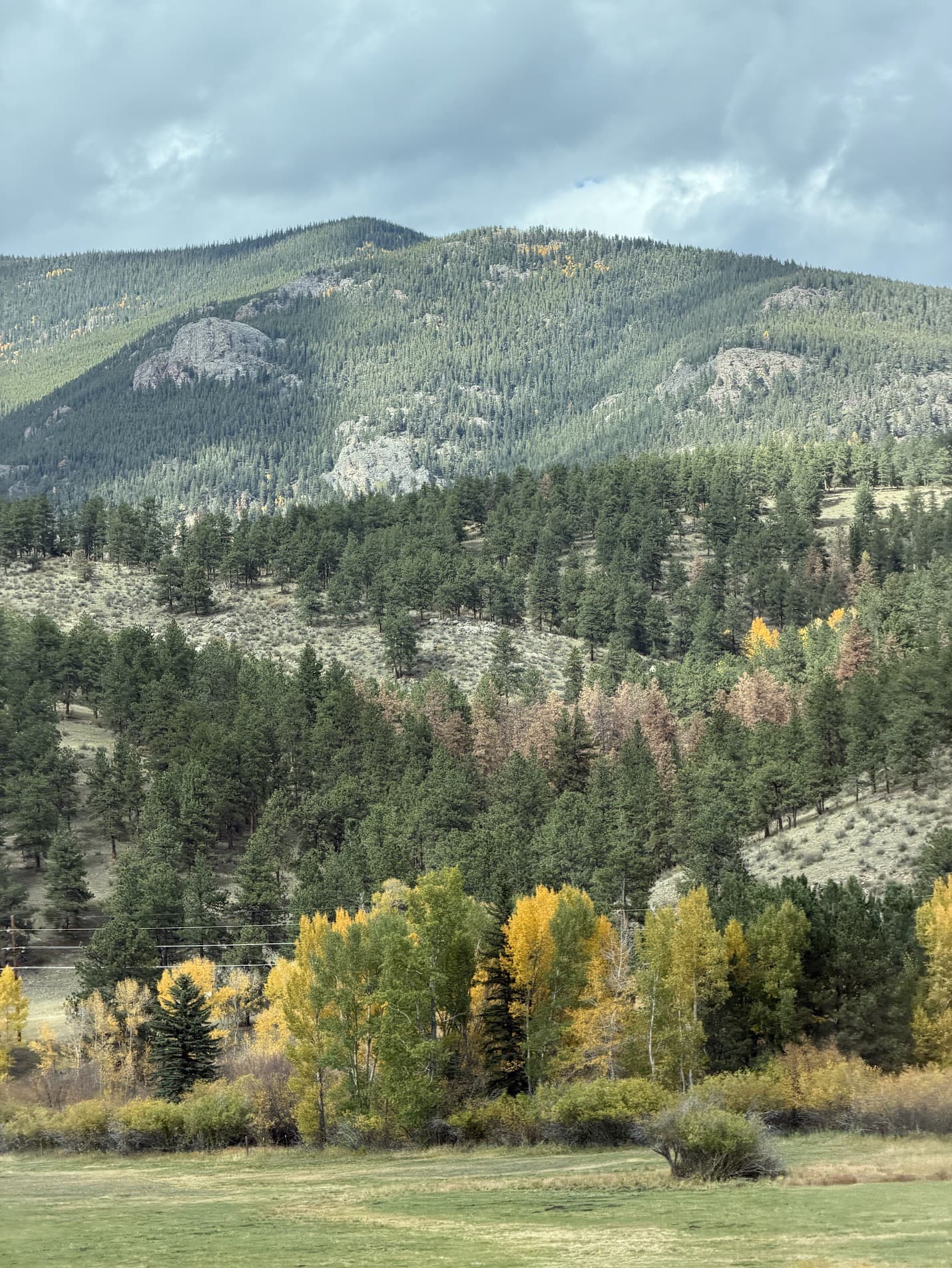 到Bailey这一段明显感到到坡度上升,耳压变化明显,植被从灌木丛逐渐变成松树、白杨(Aspen),已经可以逐渐感受到些许秋意,时不时有一簇出挑的金黄藏在一片绿色中,和想象中的漫山遍野的金色还是有些差距。