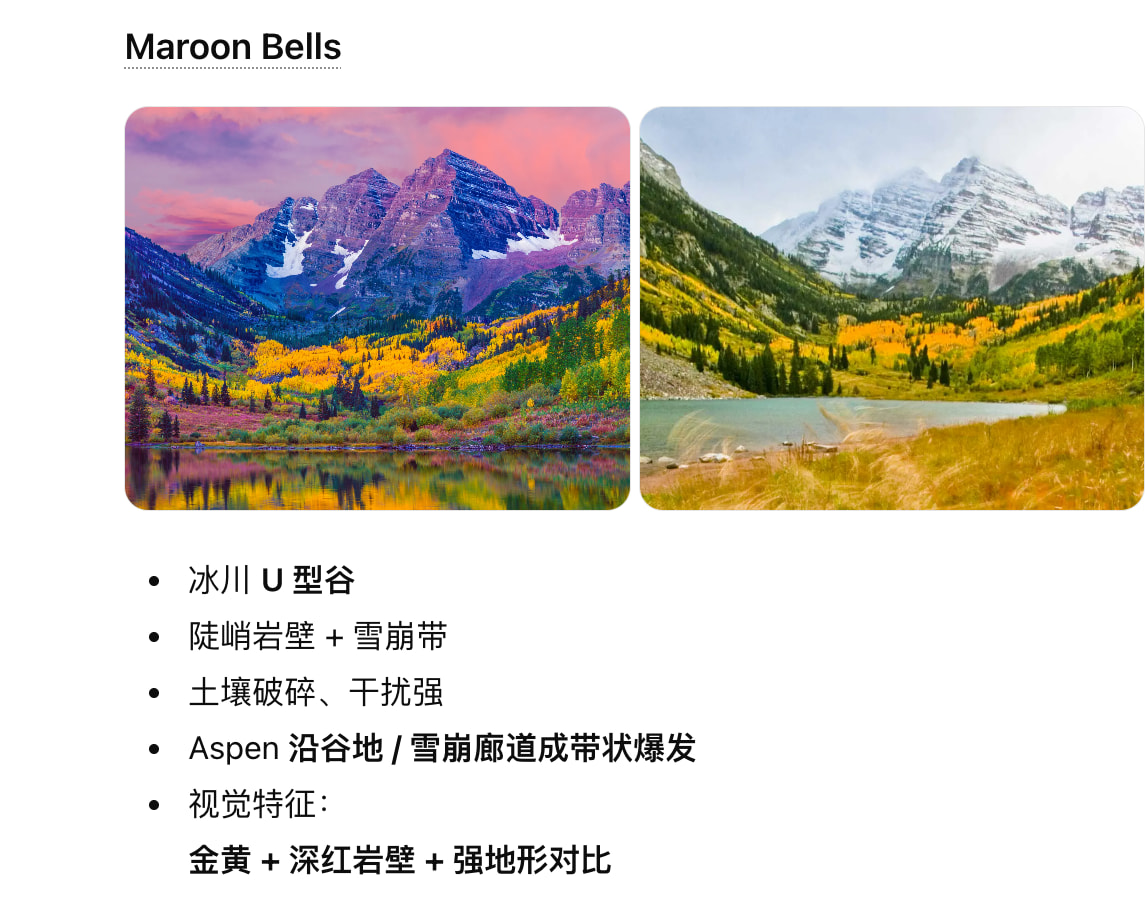 随后驶入Gunnison盆地,植被逐渐干旱化,山脚开始出现成片的白杨