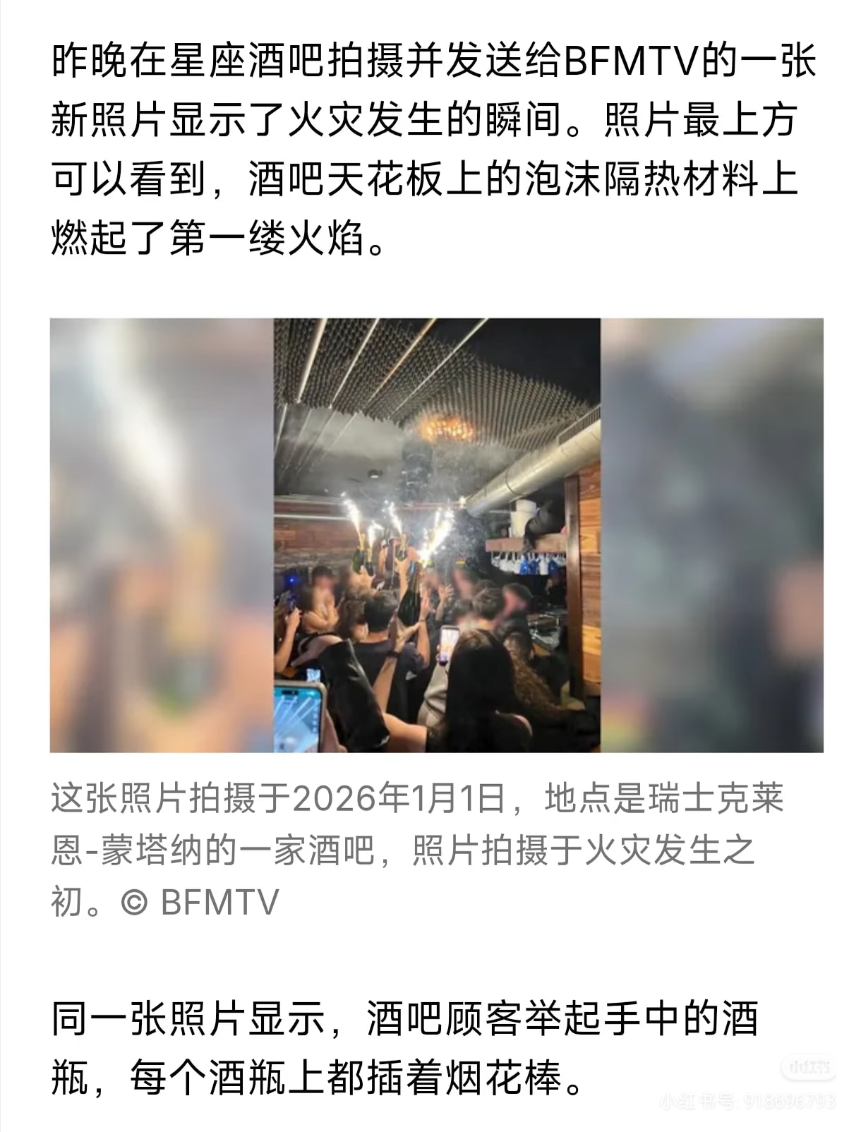 火灾发生在瑞士阿尔卑斯山滑雪胜地克朗-蒙塔纳(Crans-Montana)。瑞士警方表示,估计有数十人死亡,约100人受伤,其中大多数伤势严重。警方称,这起悲剧发生在当地时间凌晨1点30分左右,地点是一家名为“Le Constellation”的酒吧。警方已排除袭击的可能性,初步认定为火灾事故。