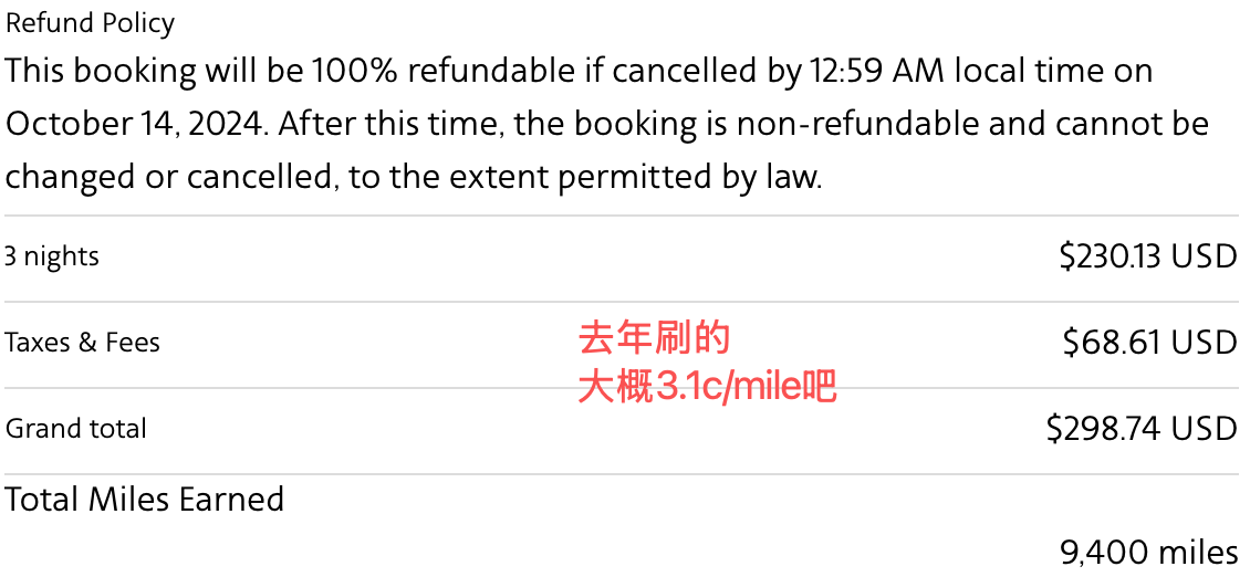 回血: 获得40k+ Miles回血估计能覆盖一半多点(我的估值可能有点高给了2cent/mile,按这个四舍五入算下来保级净成本大概 $750。