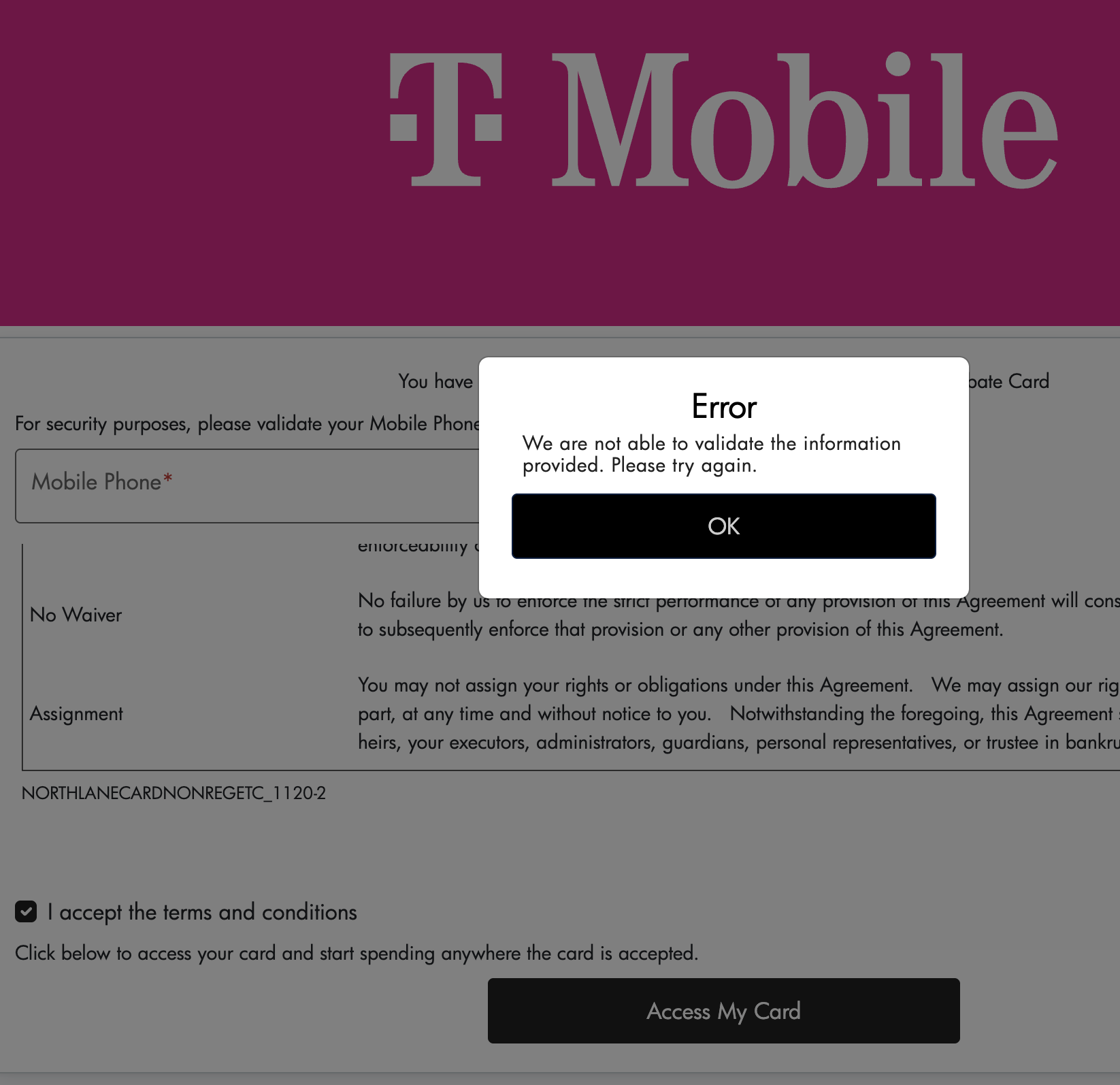那个mobile number是你填的收approval notice的号码,另外T-Mobile系统有点问题,如果号码是对的话过几个小时再试
