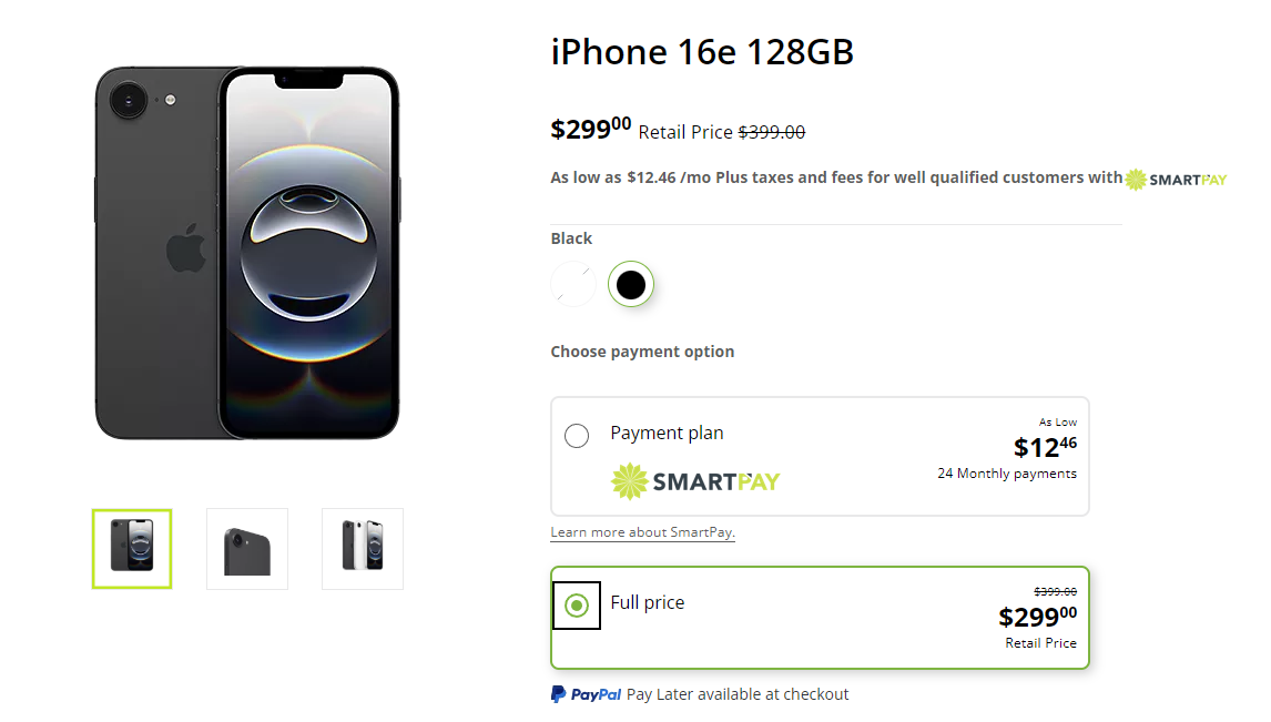 iPhone 16e + 1 month plan $334