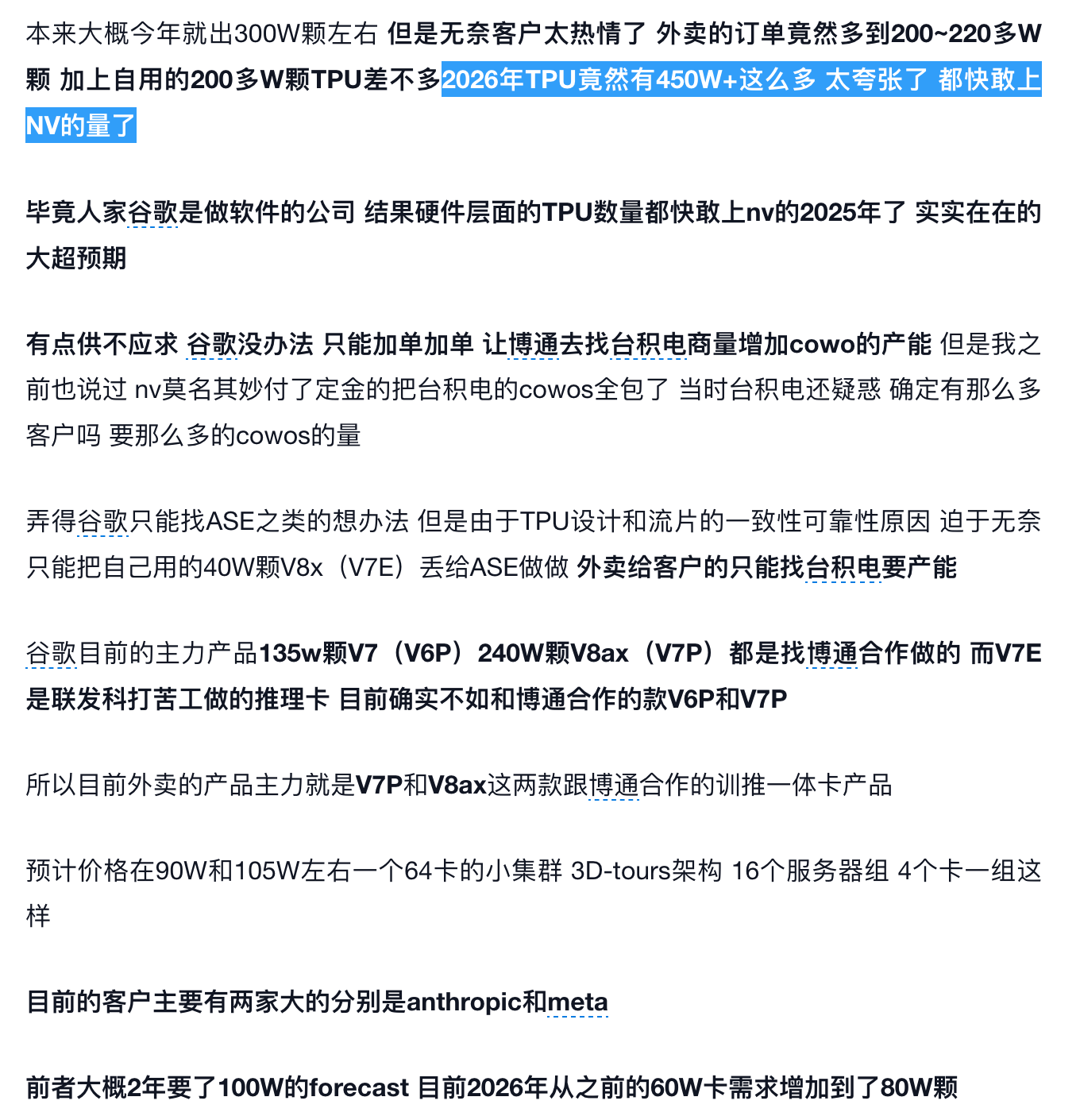 国内小作文在炒作26年TPU的量快要赶上NVDA,不知道是真是假