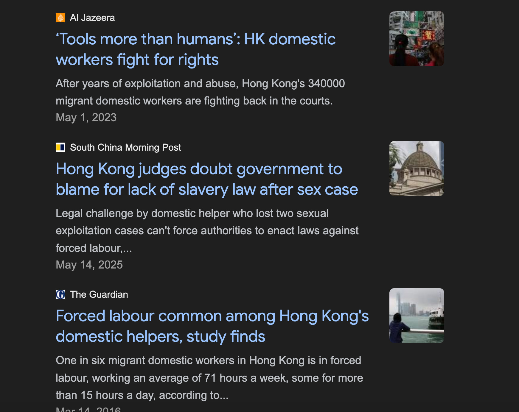 虽然我也觉得香港的菲佣制度有不好的地方,但我其实不太认同香港人把这称之为现代奴隶制度的。因为菲佣至少有一个权利,那就是二话不说离开香港回到自己的母国。为啥他们没这么做?仅仅只是因为在香港确实赚得多,他们实际上是自己选择留在香港继续干这行的。至于为什么回母国只能赚的更少,这就是涉及国际秩序的更复杂的问题了。只要有回母国的权利,就和奴隶制扯不上关系。