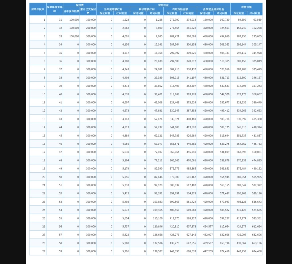 但是家里人已经买了些增额终身寿险了,父母的钱也总是要留点在身边,不可能全部转到美国来,也总是需要配置一点人民币的。这种产品也有一定的灵活性,当保单的现金价值大于总保费的时候,再考虑什么时候用钱,可以选择是要减额领取(每年20%),也可以选择全部退保解约。