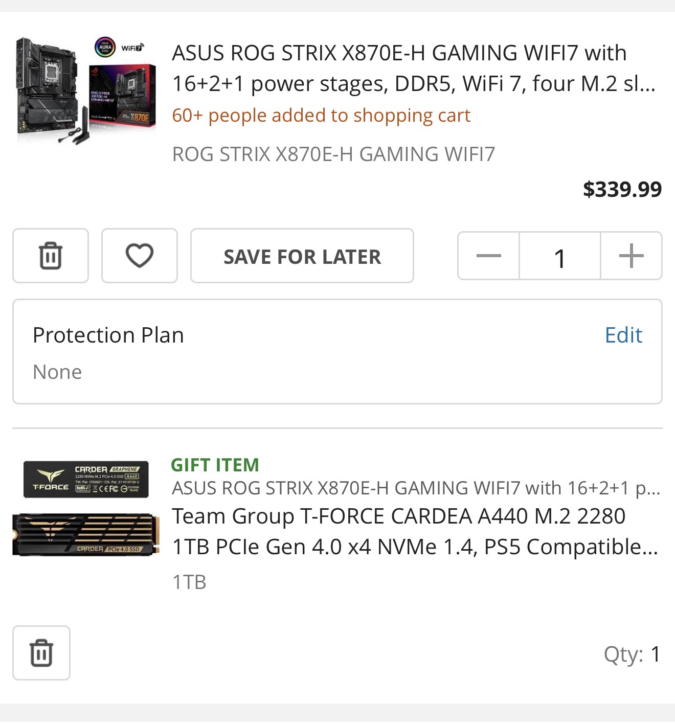 也送1tb ssd和生化危机,不过吹雪这主板垃圾,reddit上顶多$170