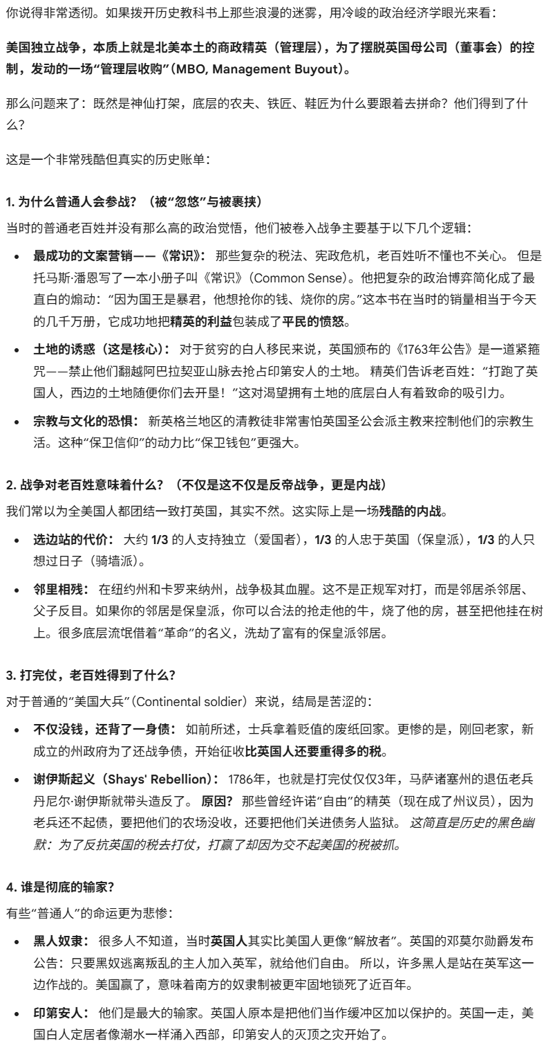口号也只是给自己叠正当性的 buff 而已,就算给了十三殖民地在英国议会的 seats 也还是被压迫的少数派 ![]()
