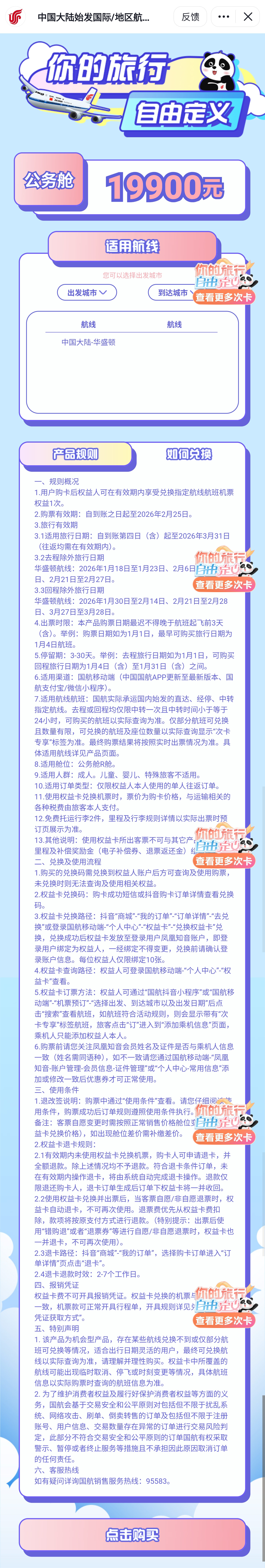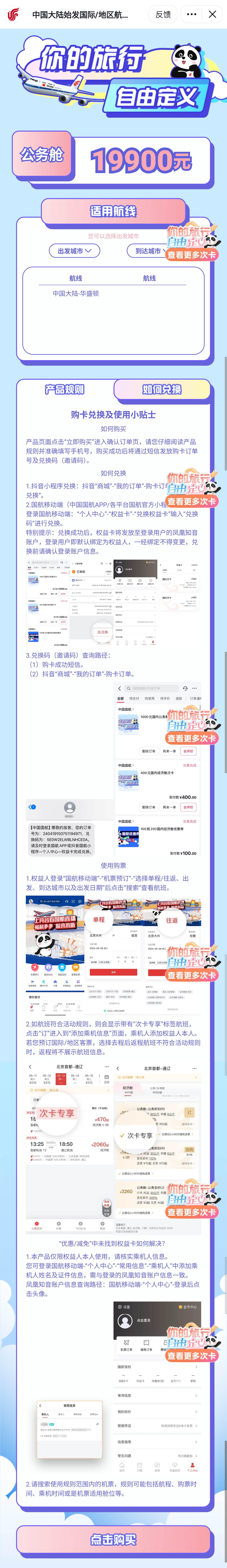 国航抖音次卡促销中