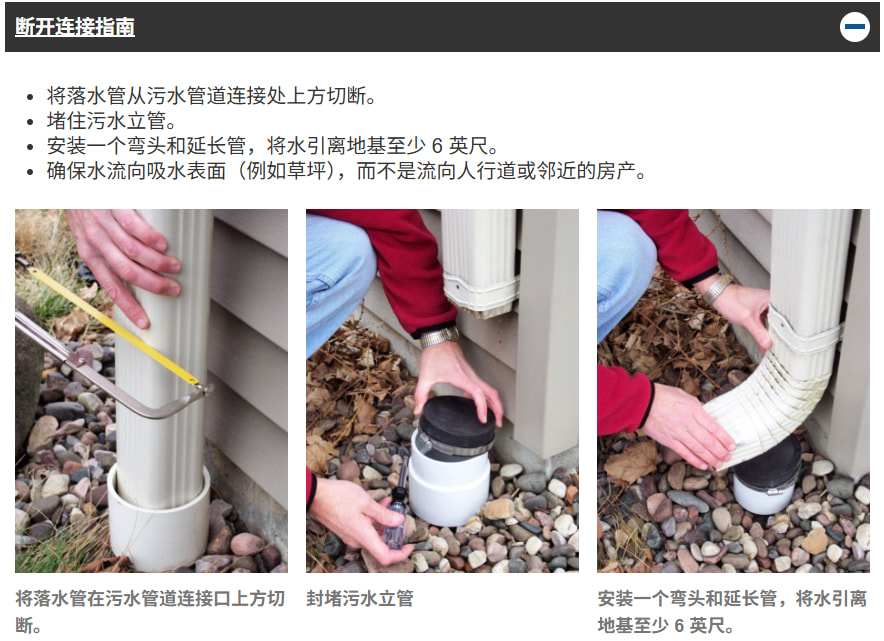 据DEP网站称,强制断开落水管的原因是落水管会将雨水排入下水道,导致雨水倒灌进地下室,并造成居民区发生洪水。