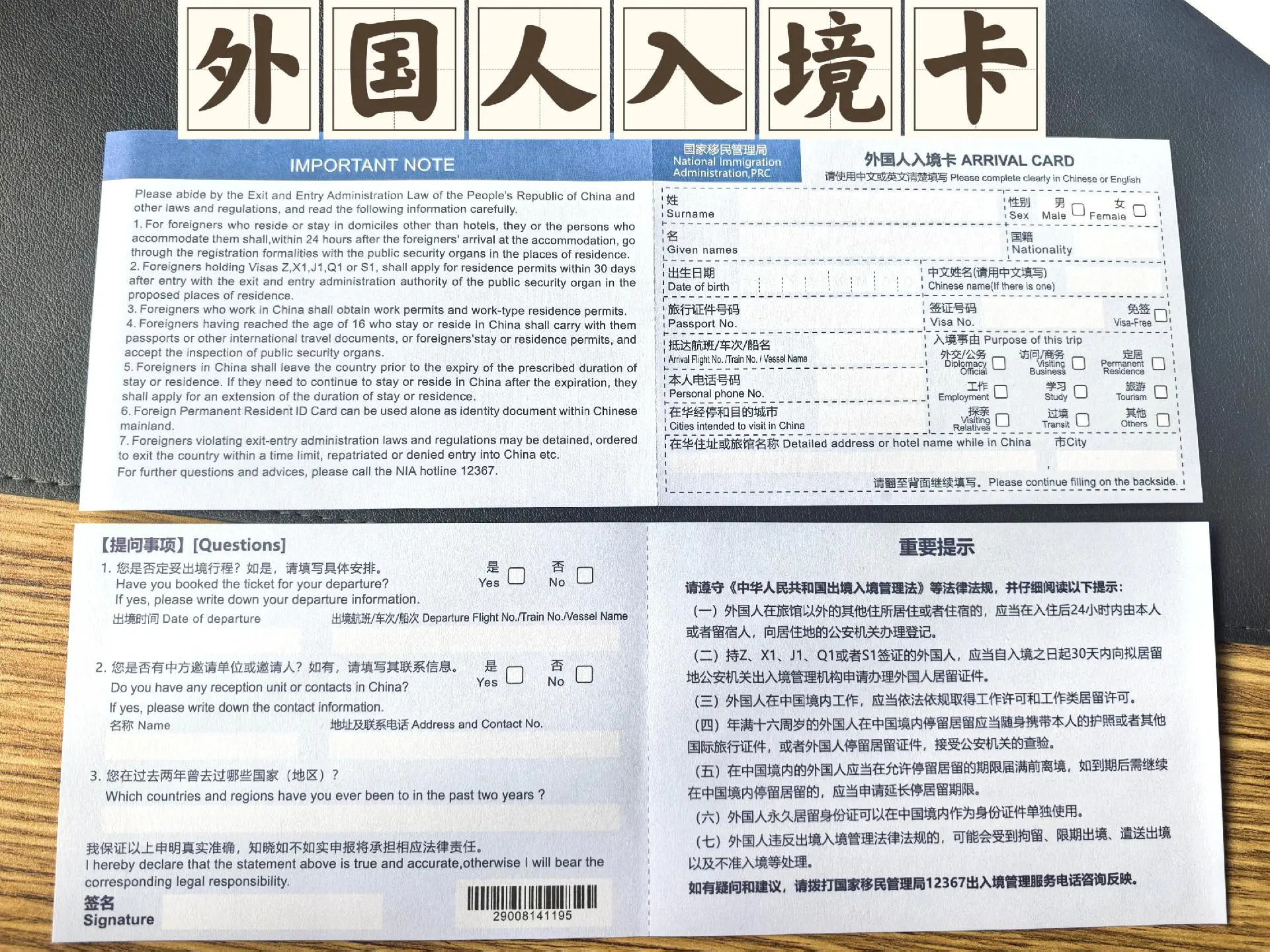 是每个trip都要填还是每个国家(?)