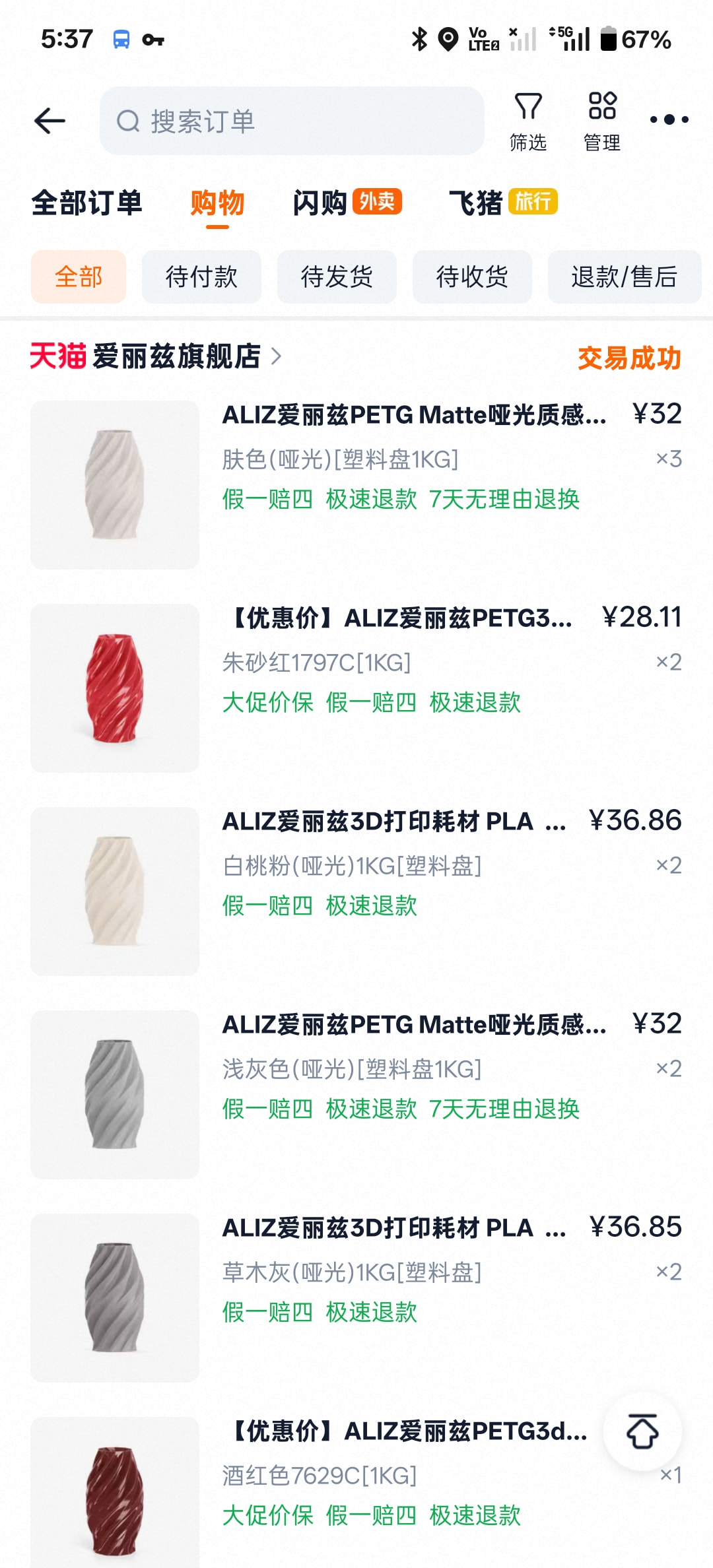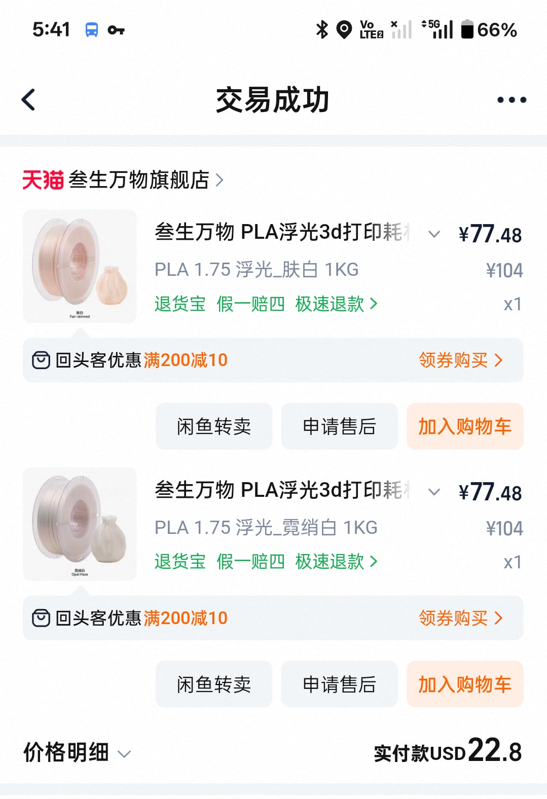 我都是买Polymaker的耗材,除非我需要它们没有卖的颜色。