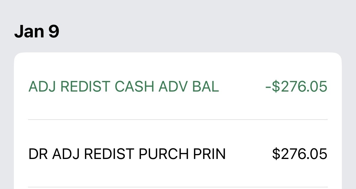 主贴中搜索 ADJ REDIST CASH ADV BAL