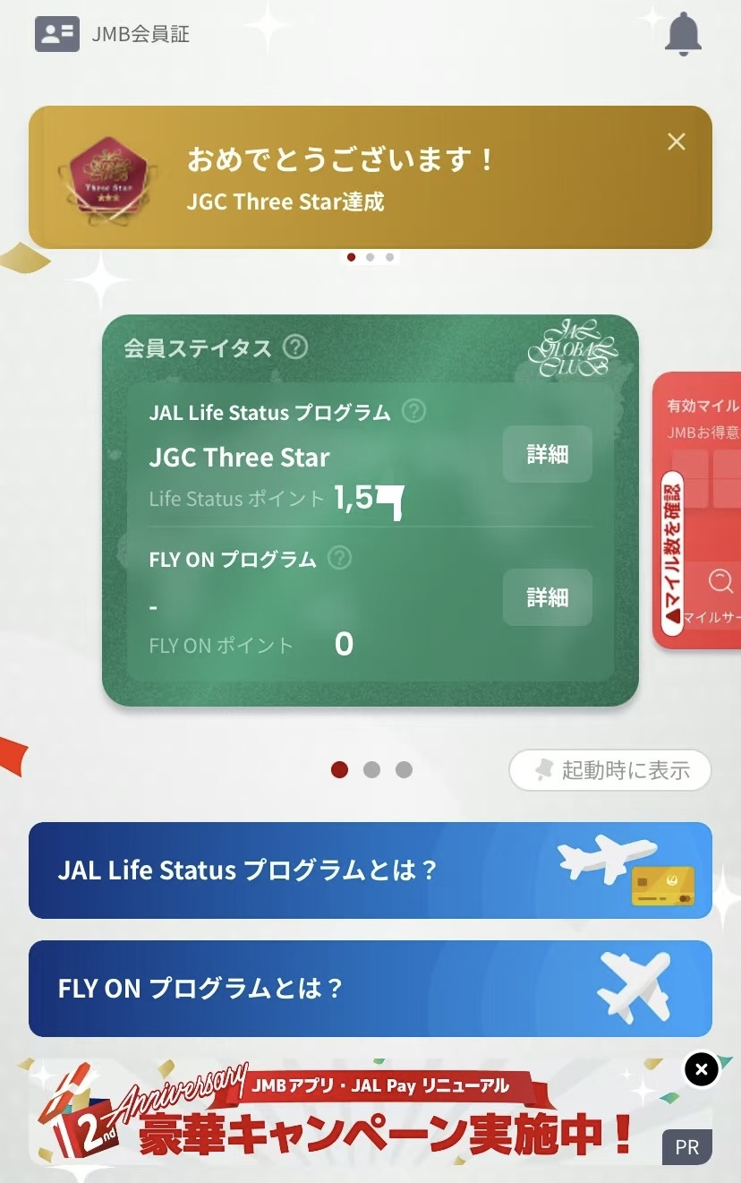 地址不在日本的话,LSP达标约五个工作日后能申请加入JGC,又五个工作日后会籍才会变。再骑3.15 M就能有绿宝石,欢迎有识之士尝试 ![]()