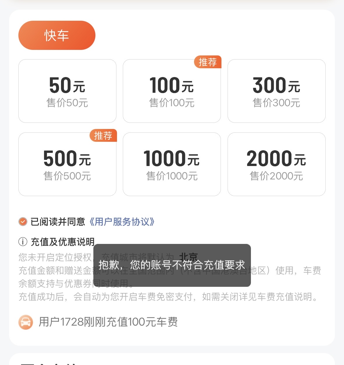 好像是?显示您的账号不符合充值要求
