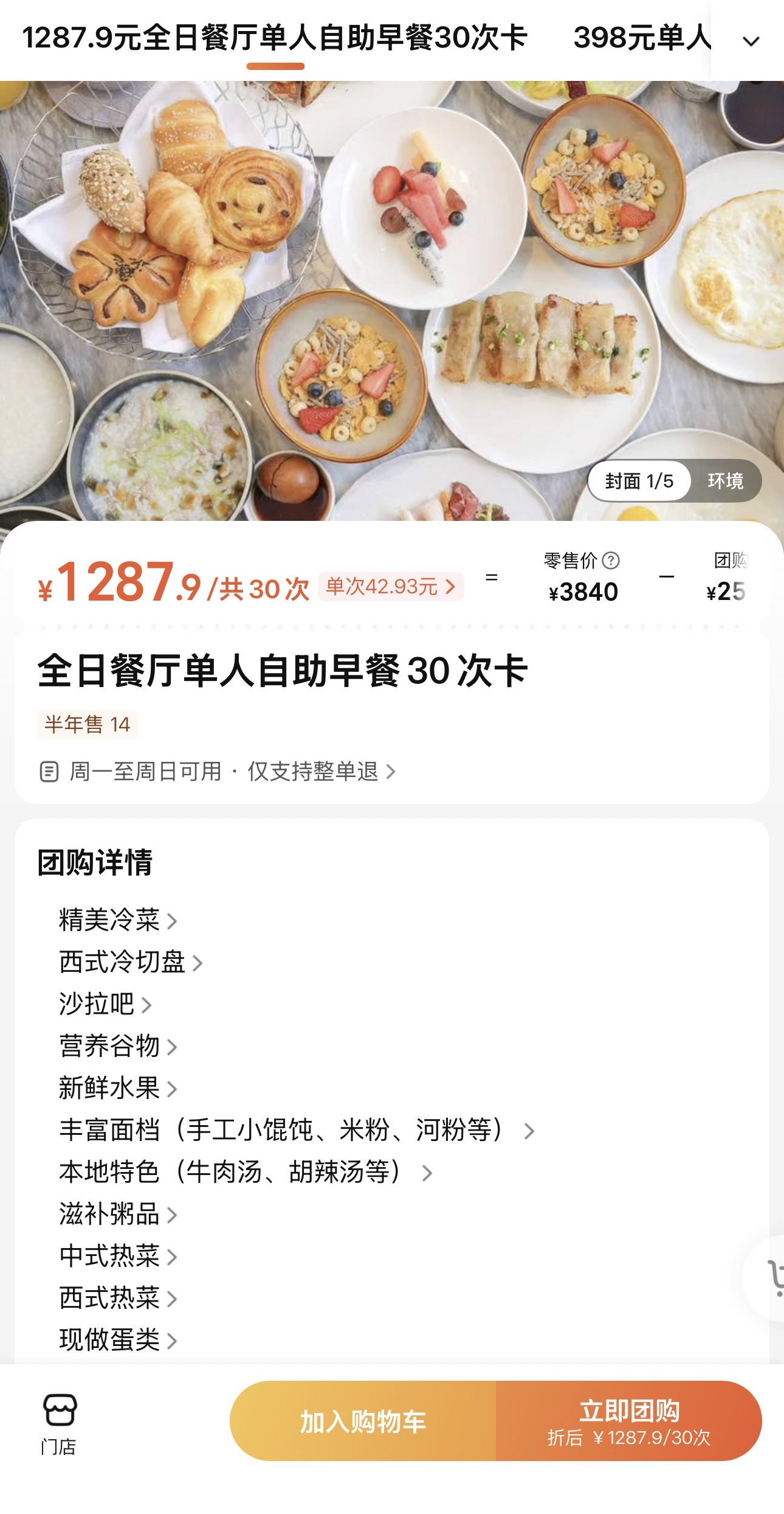 这个早餐次卡也很便宜,平均每顿只要42.9,非住户也能用,真香。