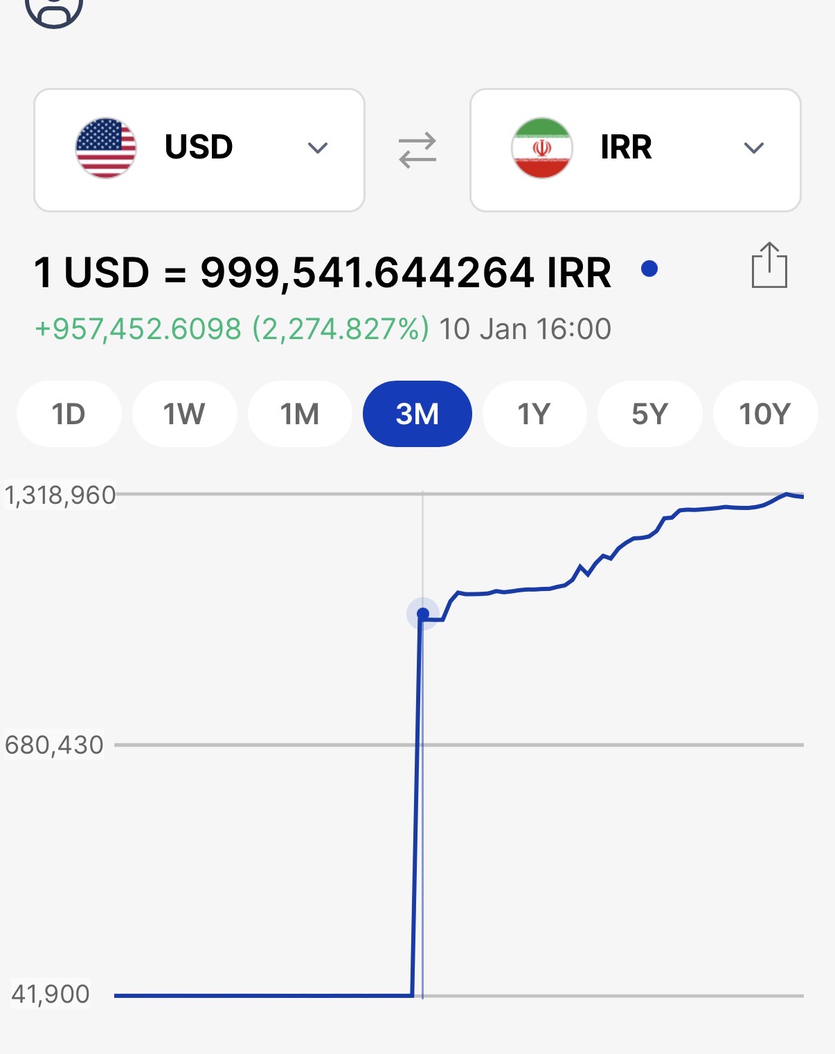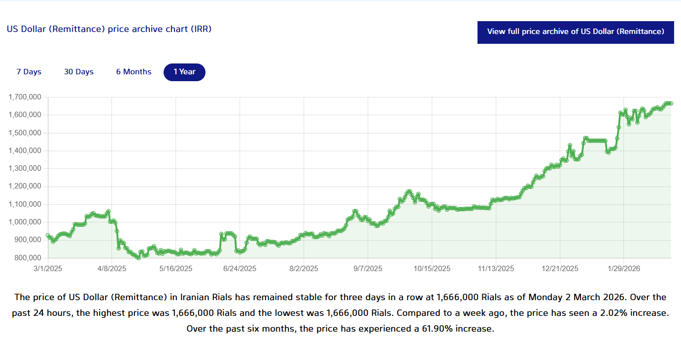 长期以来,伊朗的官方汇率不是给一般人换汇的。一般人看的是黑市汇率。在黑市里,伊朗里亚尔持续贬值但是曲线比较正常。今年1月伊朗动乱期间,央行索性不再装了,把官方汇率贬值到接近黑市汇率,所以看以来好像一夜间贬值了99%