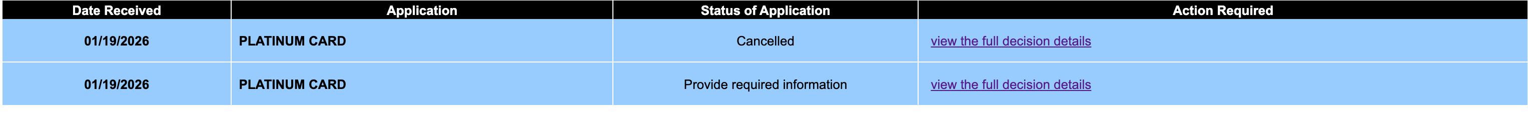 请问这里哪个是第一个申请,cancelled 显示已经unable to approve的吗,还是第二个system error的呢?如果第二张卡打电话resubmit还有机会拿到sign up bonus吗?