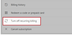 大家记得去登录你的 Microsoft 帐户 然后选不要recurring billing (别点cancel subscription)