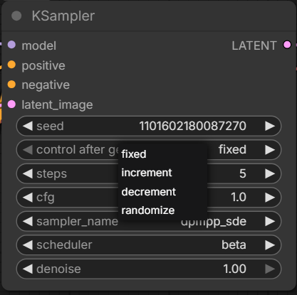 By default, the seed changes every generation, so the features will be different. If you are very specific in your prompt, the output will be more similar. However, if you have an output you really like, you can also try keeping the seed the same and only change the prompt. You can adjust seed settings by clicking on “control after generate” in the KSampler box: