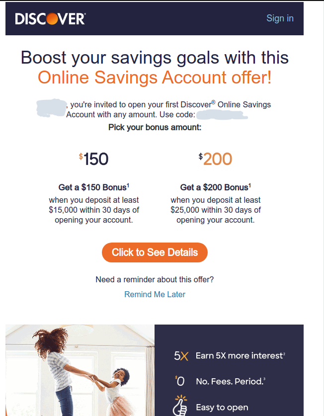 $150 Bonus: when you deposit at least $15,000 within 30 days of opening your account.