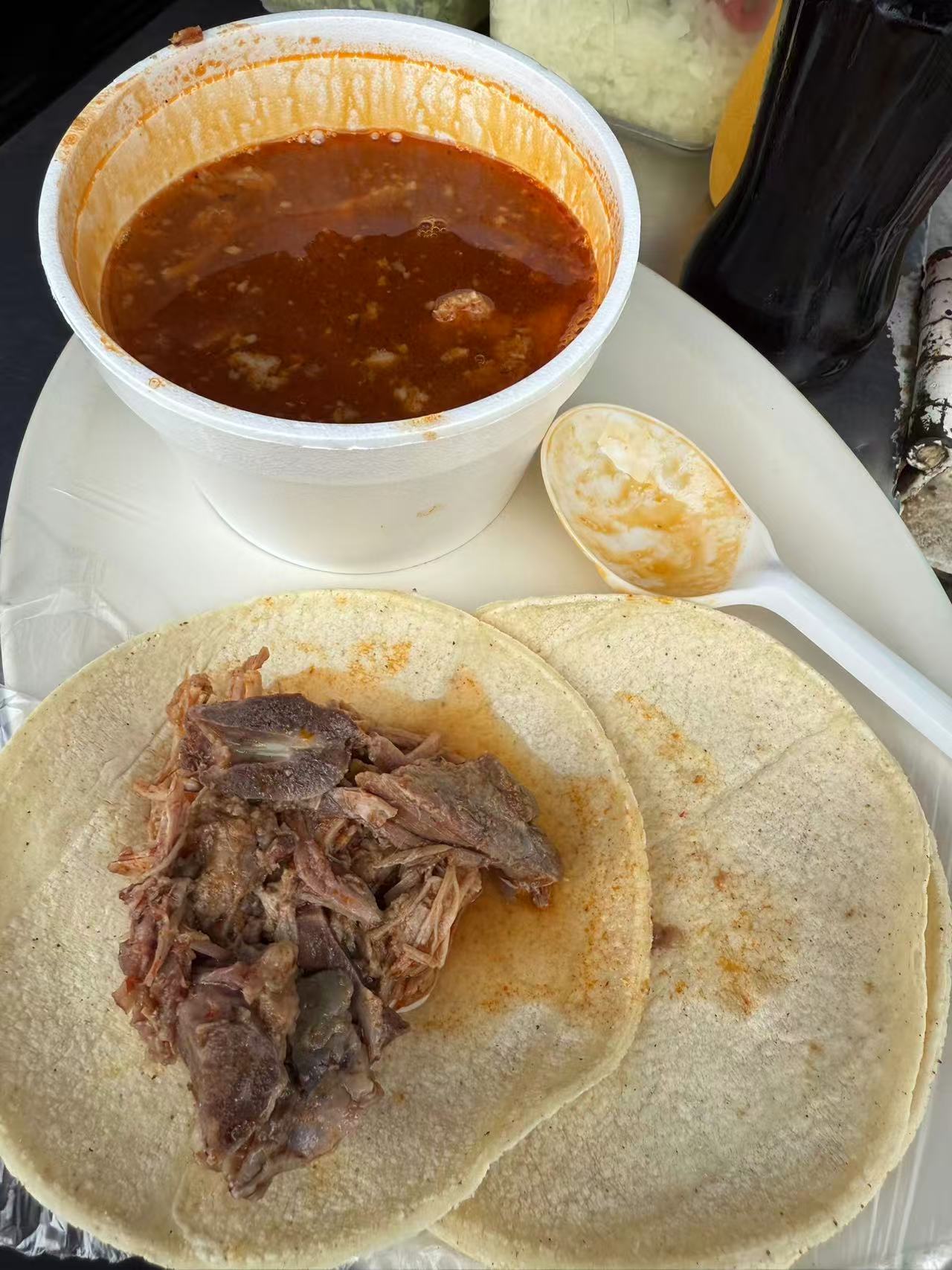 去酒店后面的路边摊吃猪肉 taco 当早餐:95 比索
