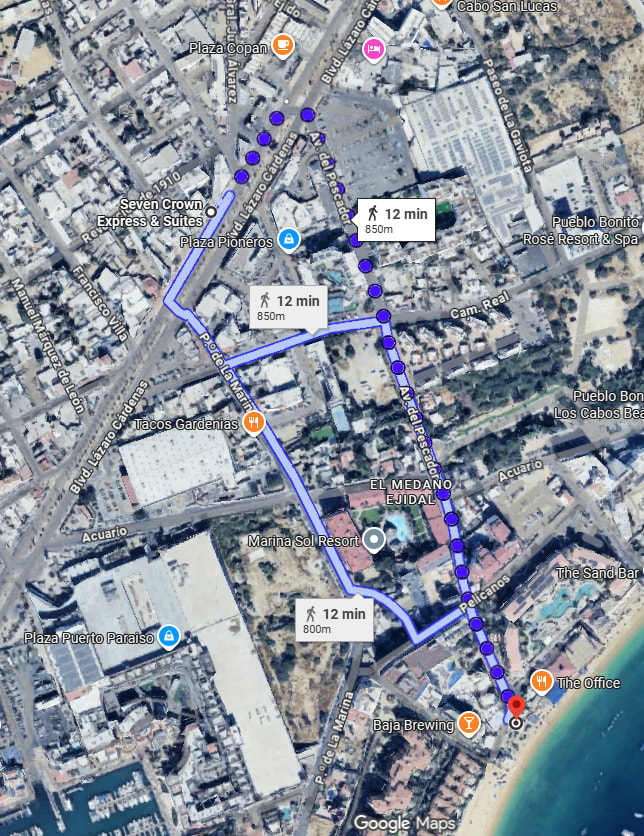 ——SJD 机场 ⇄ Seven Crown Express 酒店往返路线 + INM 办理记录