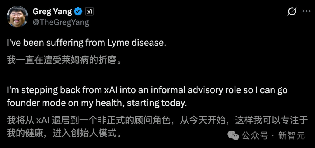 xAI联合创始人、Grok核心架构师Greg Yang(杨格)突然爆料,自己一直在遭受「莱姆病」的折磨。
