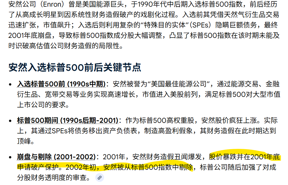 SPGI 直到安然破产市值归0才将其剔除指数